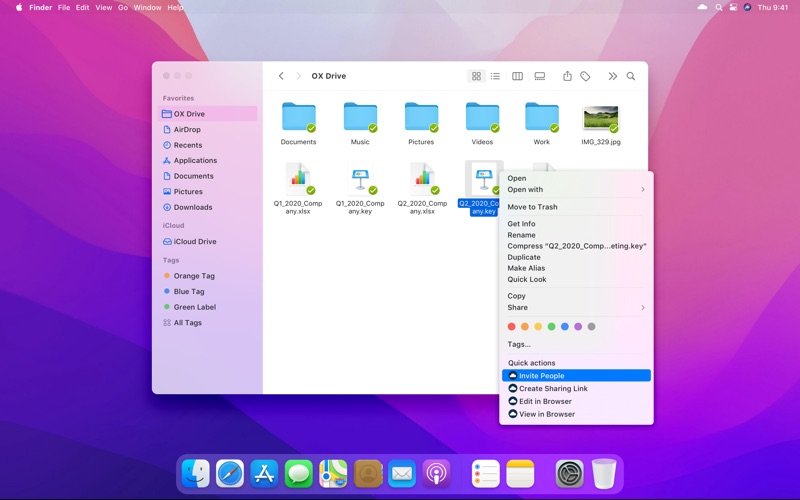 - Share files and folders directly from the Mac Finder like in OX App Suite