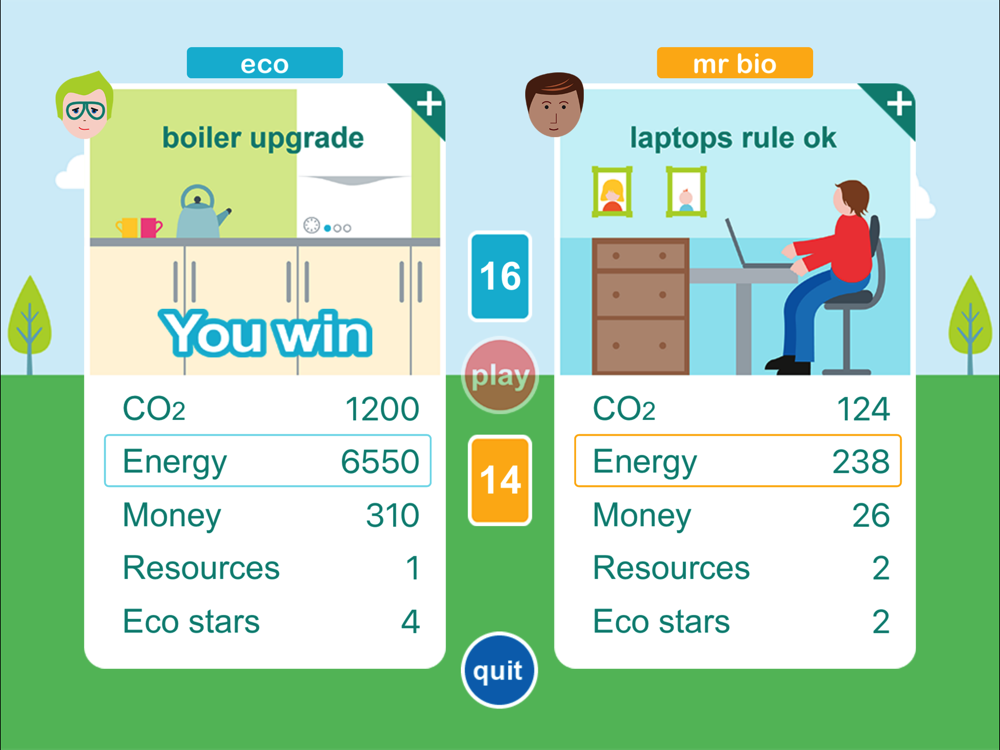 But that’s not all, eco action toppers is not just a game! It’s also an easy way of keeping a score of all the eco actions you are doing, or are keen to adopt. Keep score of your actions on the actions dashboard screen and then explore how much money, carbon and energy you are saving in total each year.