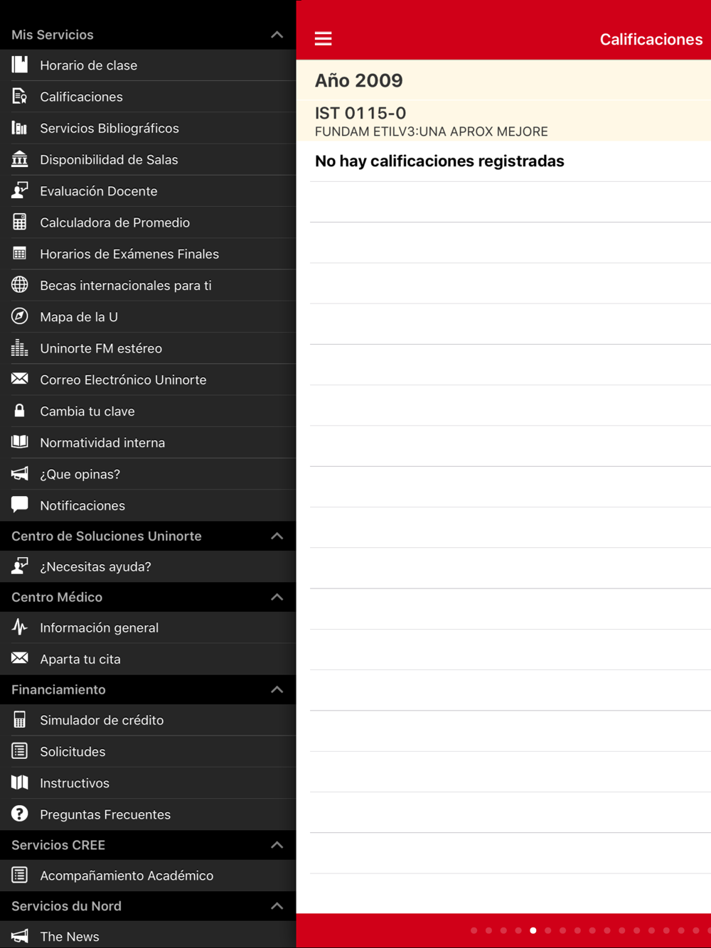 • Calificaciones – Consulta las notas parciales de tu semestre actual y revisa las notas finales de periodos anteriores.