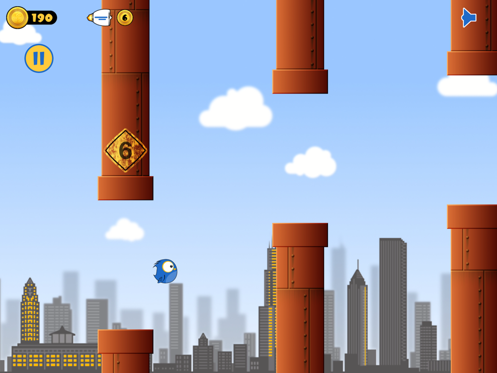 Meet Happy! He's a small, blue bird with a hard, hard head. Help him fly through obstacles to score points.