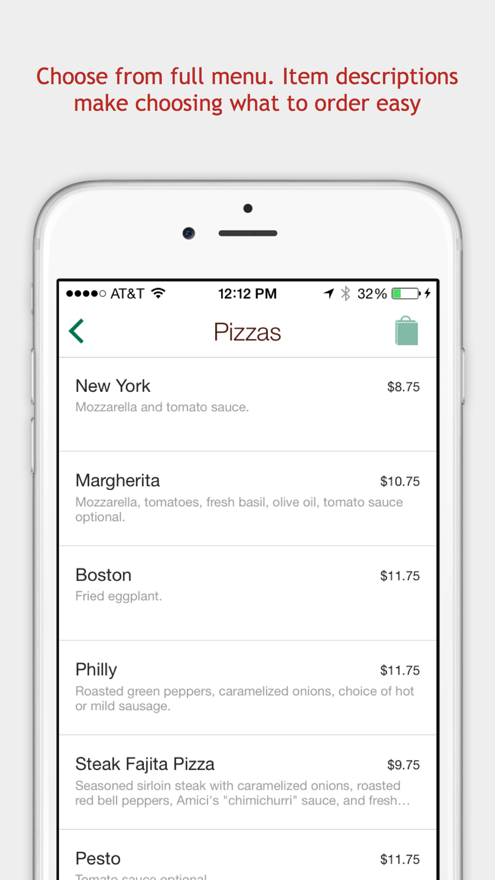 The official Amici's app, powered by RRTUSA, allows you to find and order from nearby restaurants in a quick and convenient way. Customize your meal, redeem mobile & web promotions, discounts and offers, select a pickup time and your food is ready for takeout when you arrive at your local restaurant. You can skip to the front of the line, pickup your food, and go!