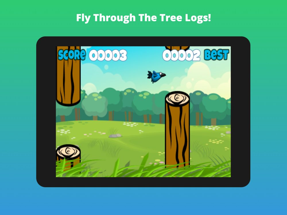 Take control of a cute blue bird with crappy flying skills and fly through the logs of wood in the forest by tapping on the screen.