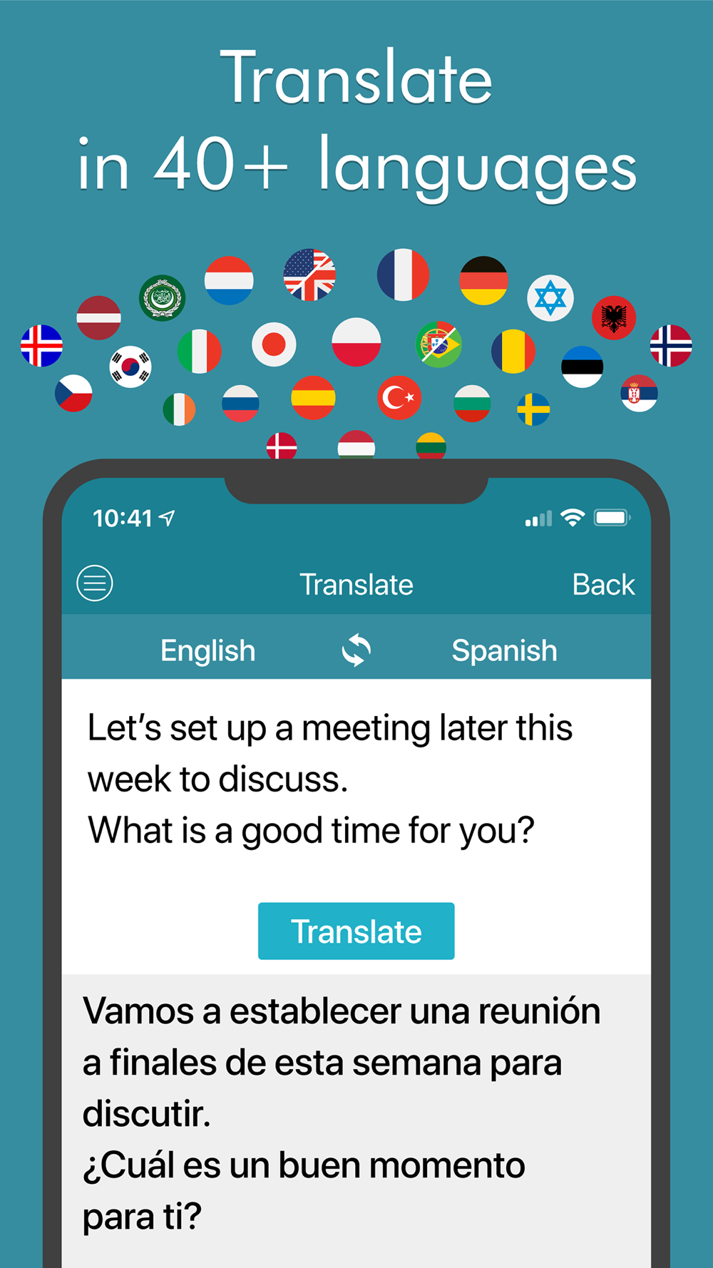 • Instantly translate your text into over 40 languages