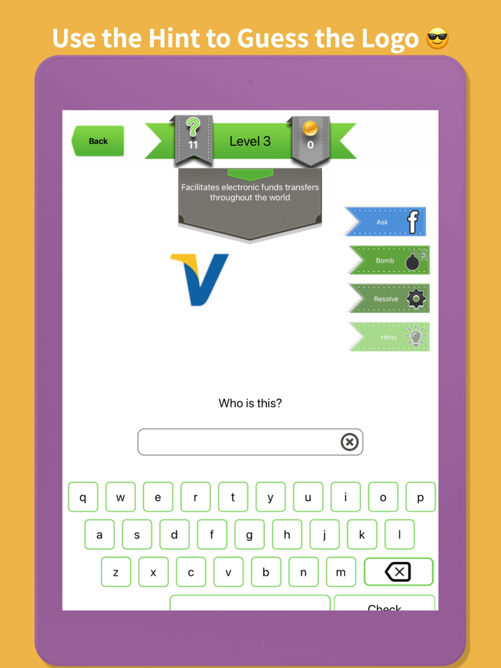 If you are blocked and you don't know the answer for a logo, don't give up! Use one of the hints that each logo has!
