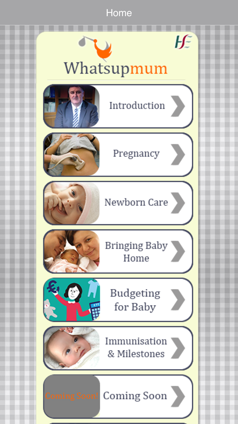 The app links you to more detailed individual whatsupmum apps if further information is required.