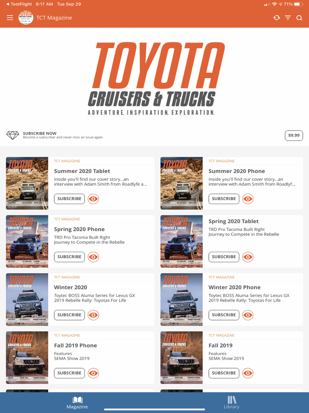 TCT Magazine - Toyota Cruisers & Trucks offers the following auto-renewable subscriptions: