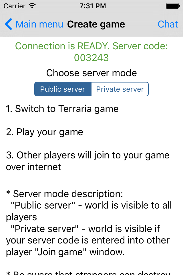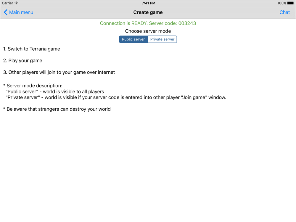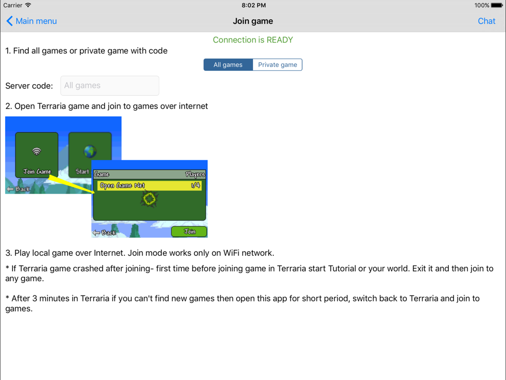 This application allows to play Terraria multiplayer and must be used together with original iOS Terraria game.