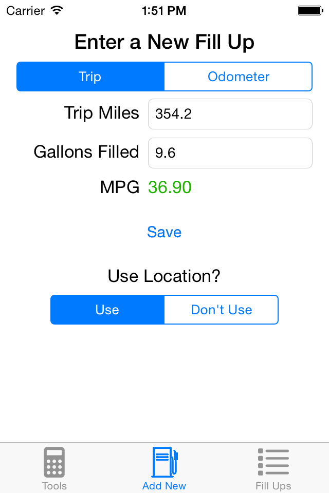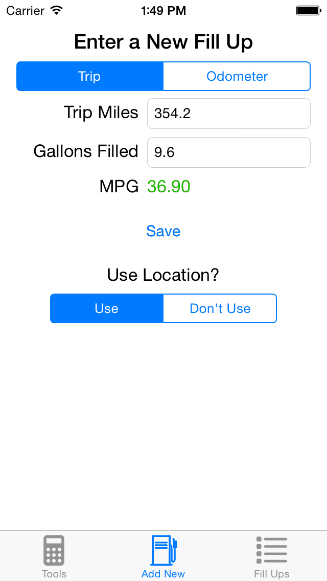 A Simple, Free, Ad-Free app to help you keep track of your MPG. Simply enter in your trip, or odometer reading, and how much you filled up at the pump and let Fill Up do the rest!