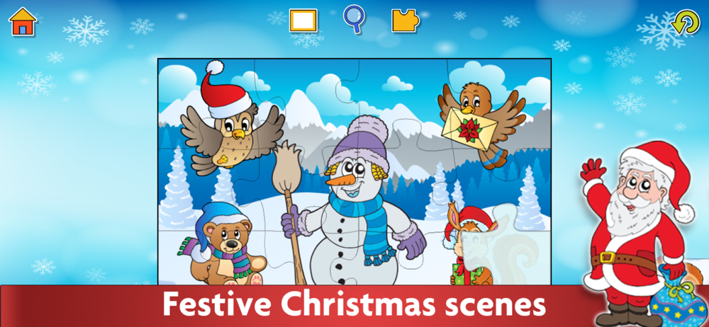 Each puzzle features a different beautiful scene drawn by a professional cartoon artist, and a unique reward when the jigsaw puzzle is completed. Scenes include things like cute animals, dragons, or dinosaurs, and the rewards can be to pop balloons, fruits, snowflakes or many more!