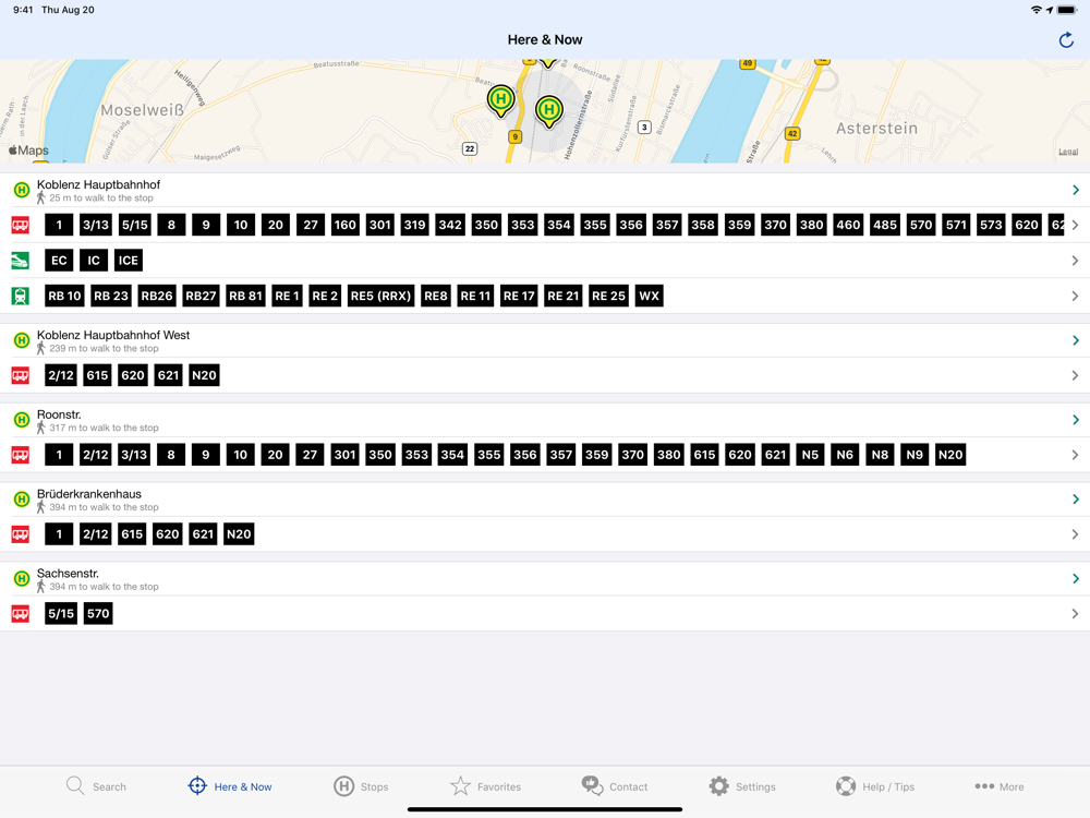 At a glance, the app offers an overview of all the departures from bus stops in your immediate vicinity. Thanks to the integrated map function, you will also be able to find the quickest route to the specified station.