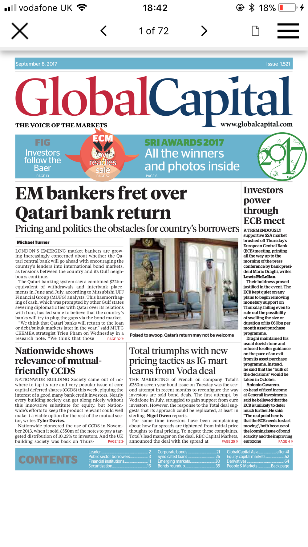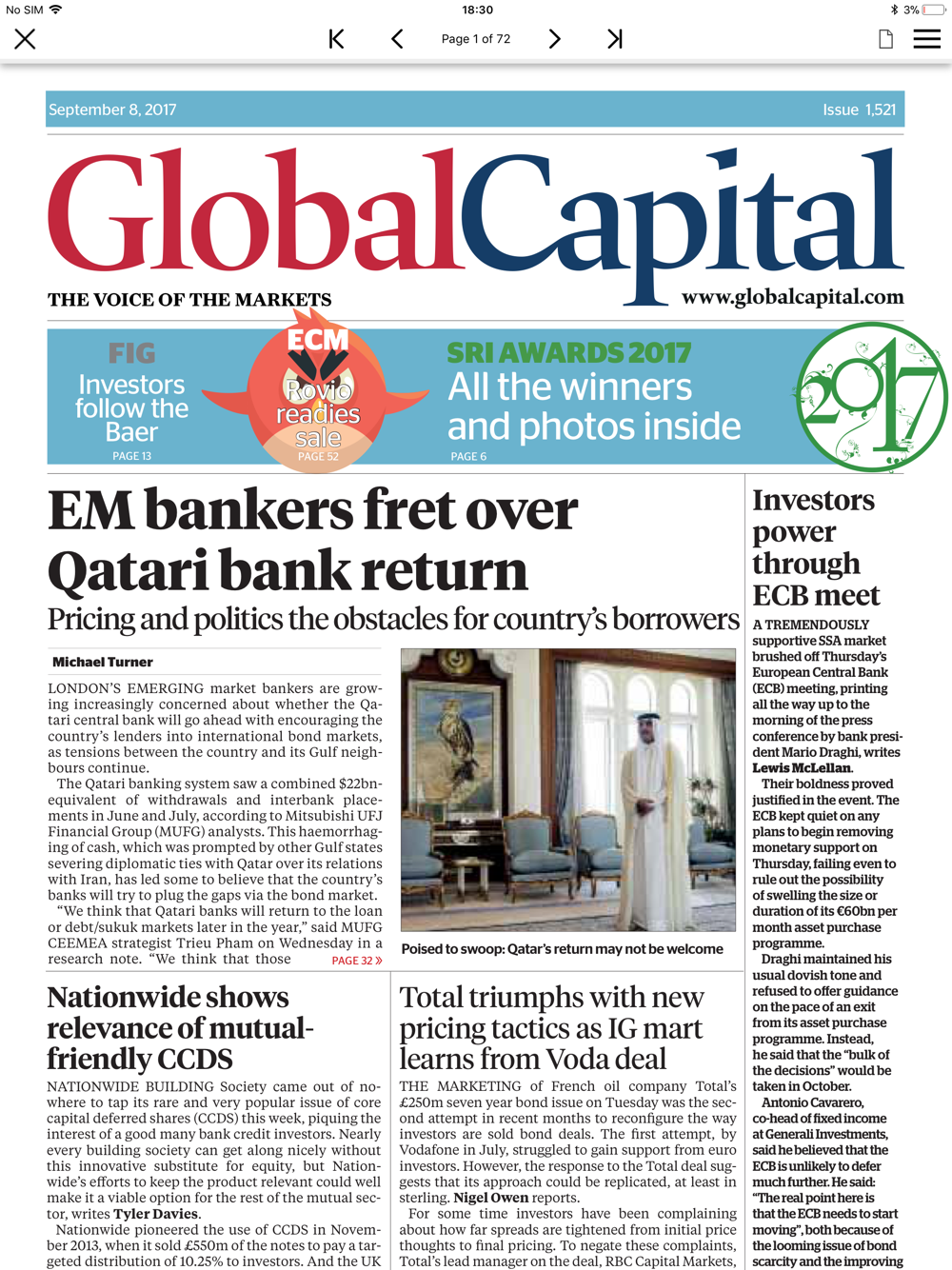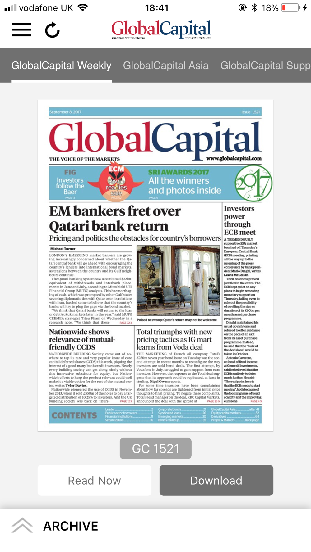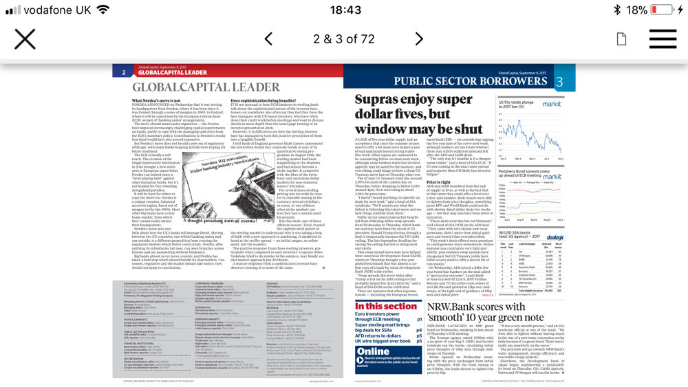 By downloading the Global Capital app you benefit from coverage across the following markets is a weekly PDF: