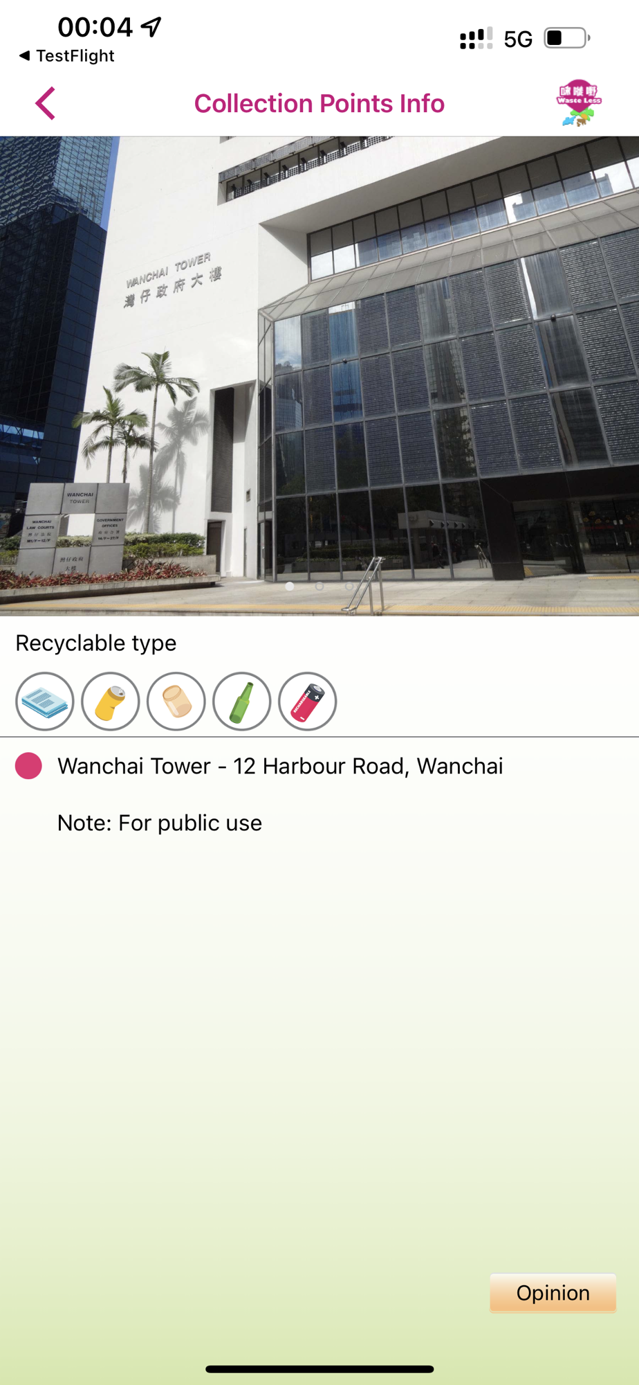 “Waste Less” is a mobile app developed by the Environmental Protection Department (EPD) of the Government of the Hong Kong Special Administrative Region. Its primary function is to show nearby collection points for recyclable items via a map on your device, with details, including photos, address, recyclable types, opening hours, etc.