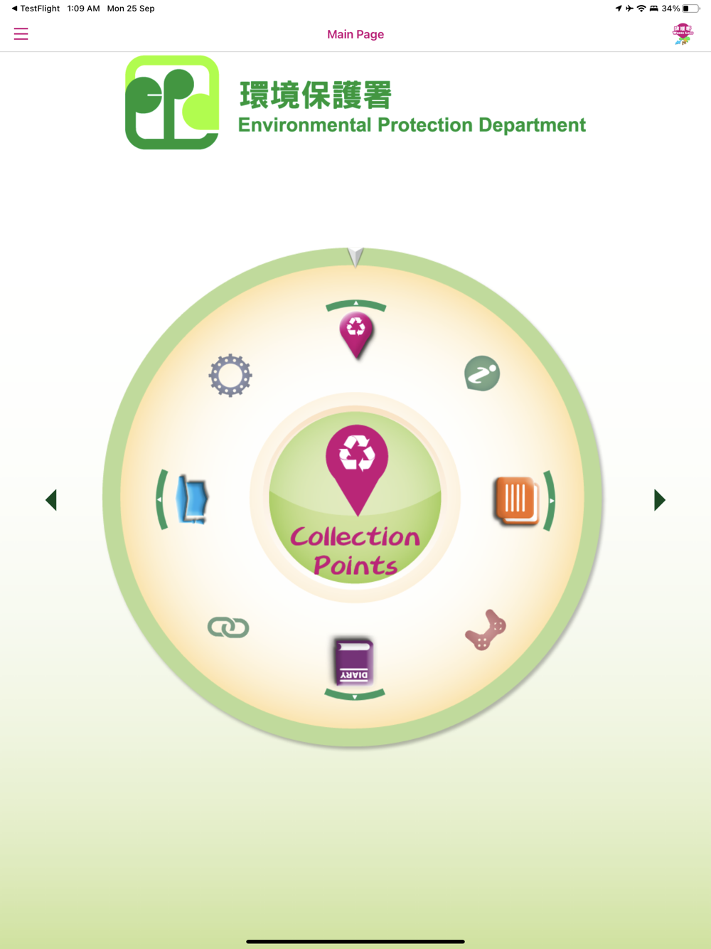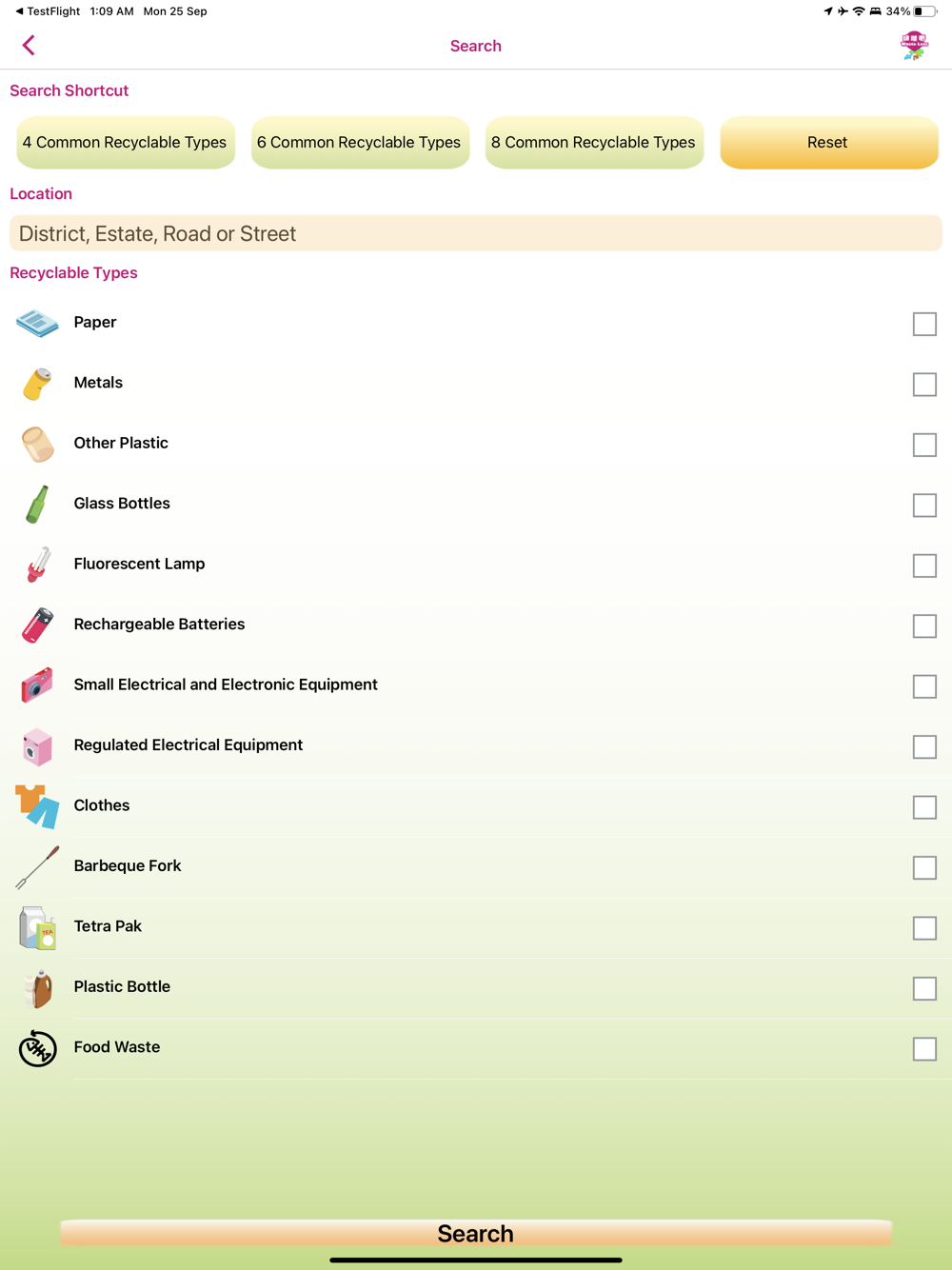 - “Search” function to find out the most suitable collection points for recyclable items;