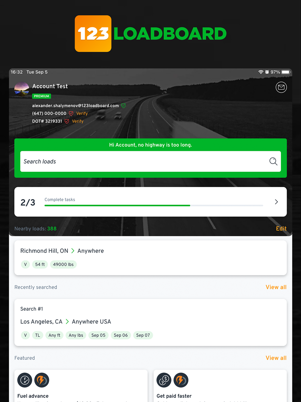 With our reliable, powerful and secure load board app, you get the great features you have come to enjoy on 123Loadboard - now in the palm of your hand.