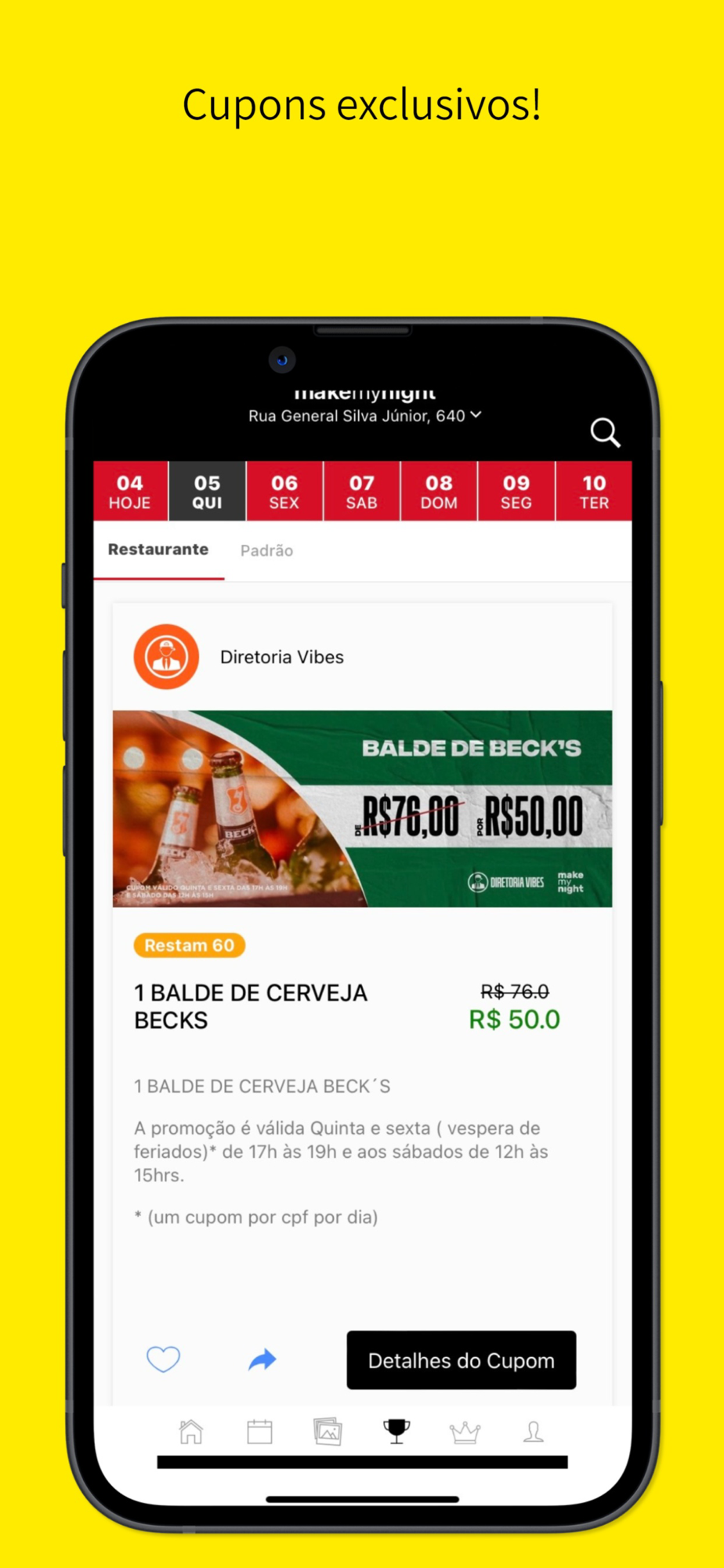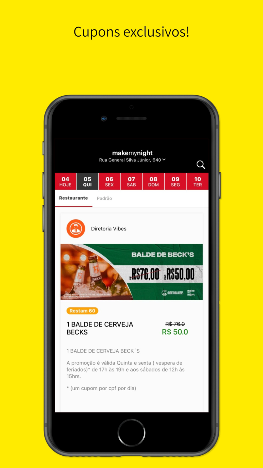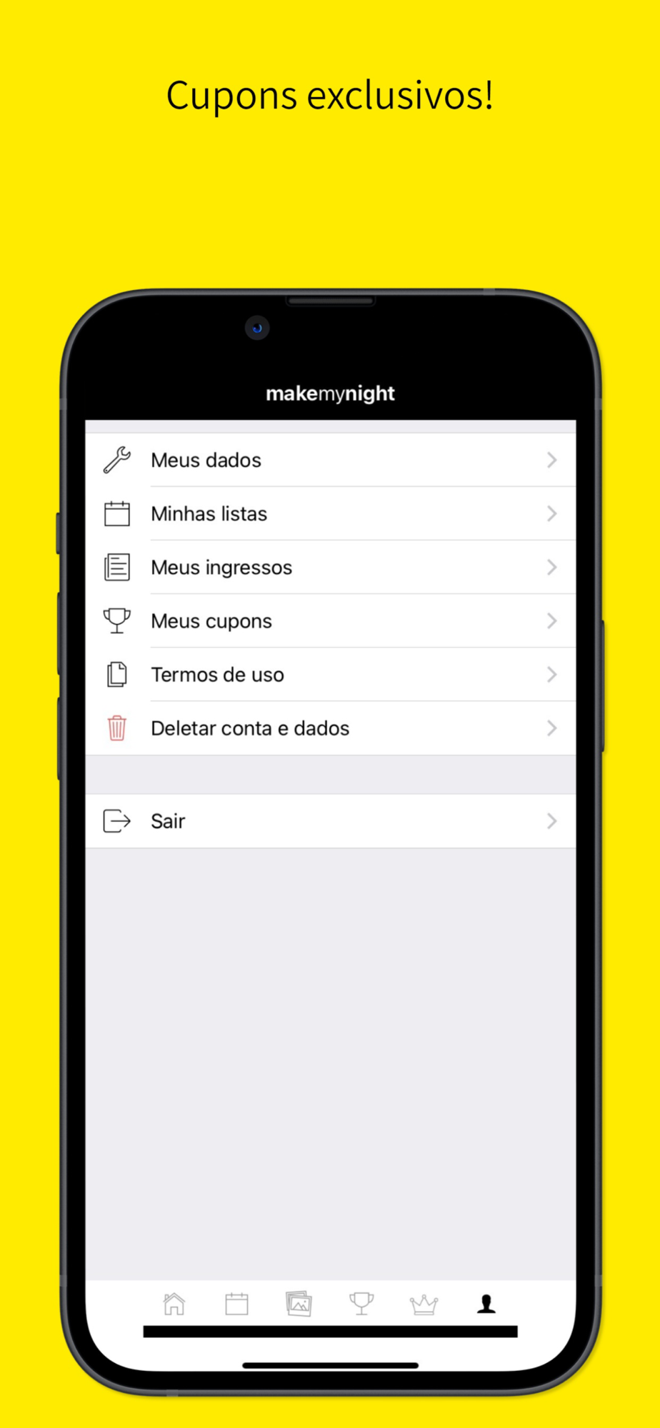 O MakeMyNight é um aplicativo de BENEFÍCIOS onde você pode acompanhar os melhores eventos, participar de listas VIP exclusivas e emitir PROMO todo dia através dos cupons liberados no app.