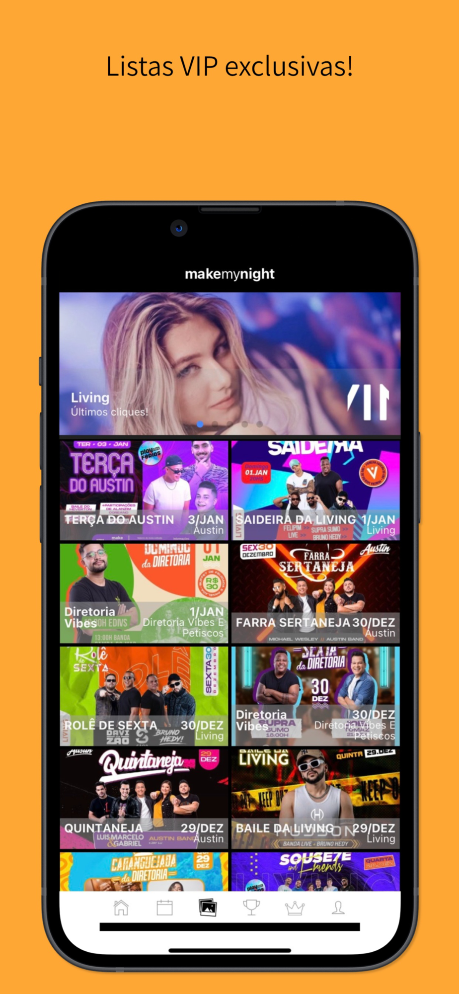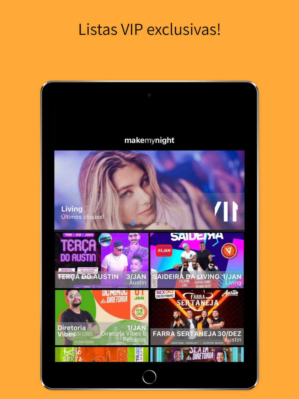 Que tal participar de listas VIP e aproveitar as melhores festas da cidade? Com o MakeMyNight você inclui seu nome e não perde nenhum evento da cidade!