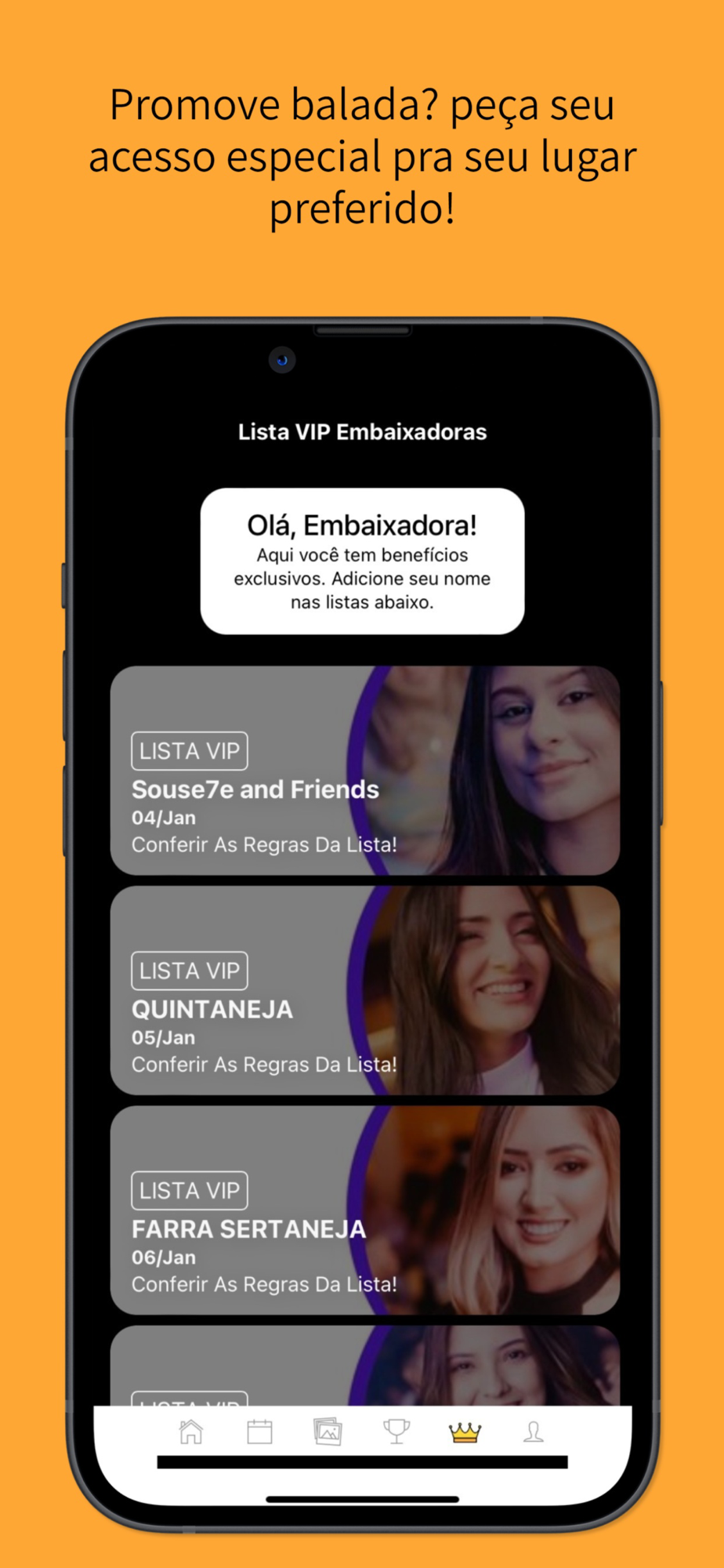 Tudo sobre que acontece na cidade na palma da sua mão! Você agora pode se informar sobre as melhores festas, participar de listas e promoções pelo seu próprio celular, de forma prática e segura.