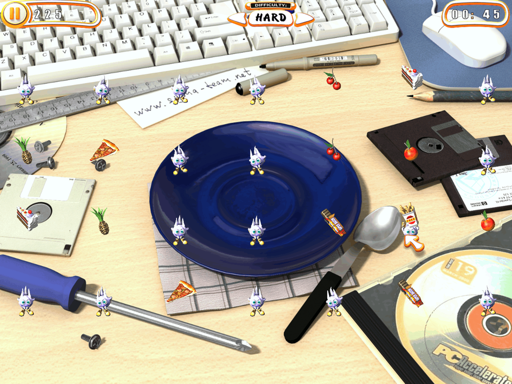 The problem is that little strange creatures appeared on your desk. You will have a lot of fun trying to get rid of them.