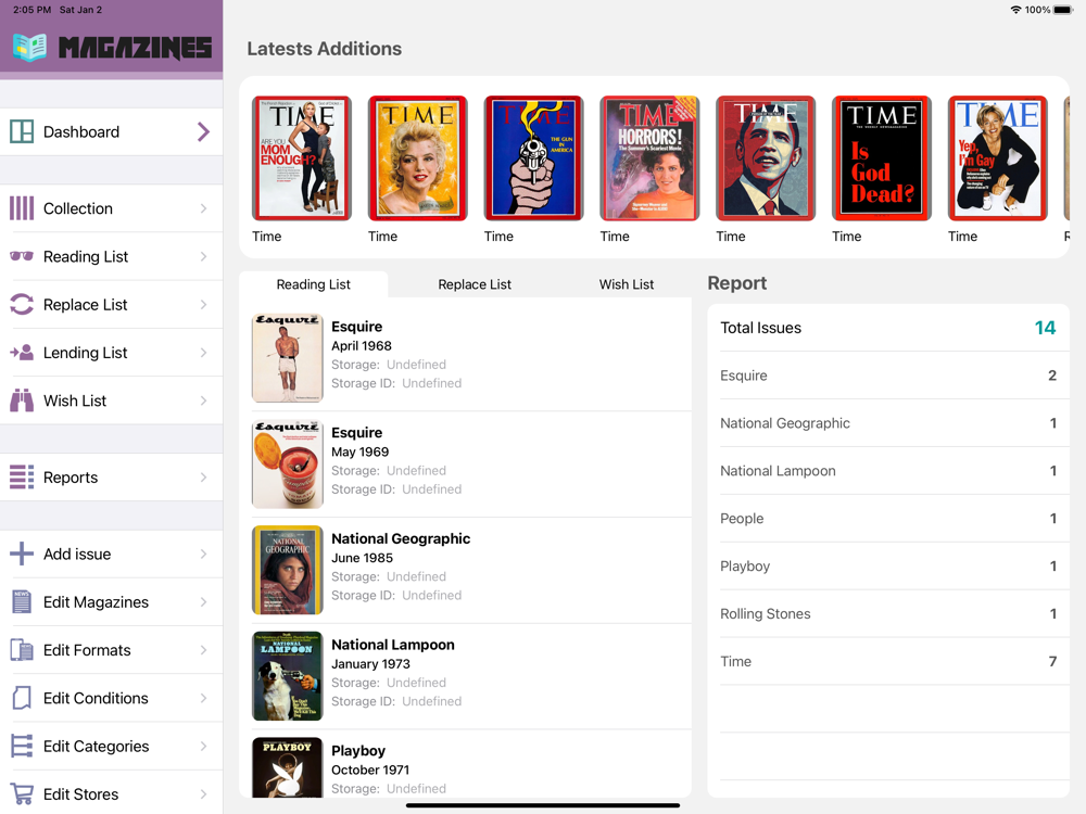 > Create a list of the magazines in your collection