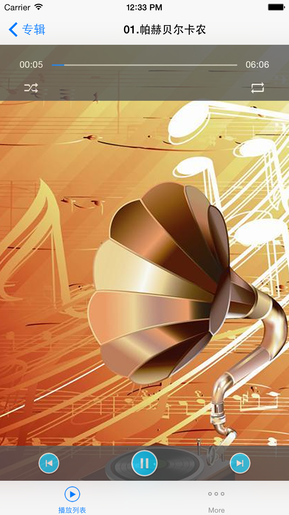 * 支持顺序播放、随机播放等模式