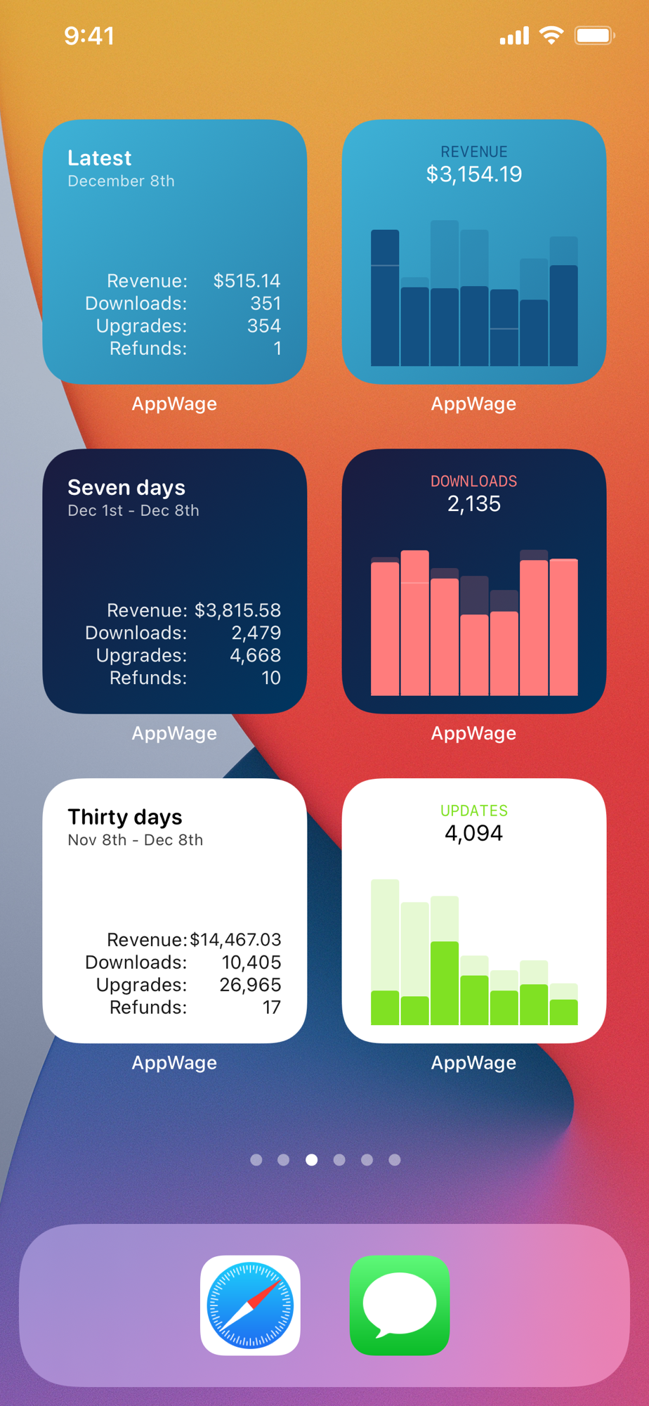 AppWage is a local Sales and Revenue reporting application for developers. It allows developers to quickly see important information at a glance, such as Revenue, Downloads, Upgrades, and Refunds.
