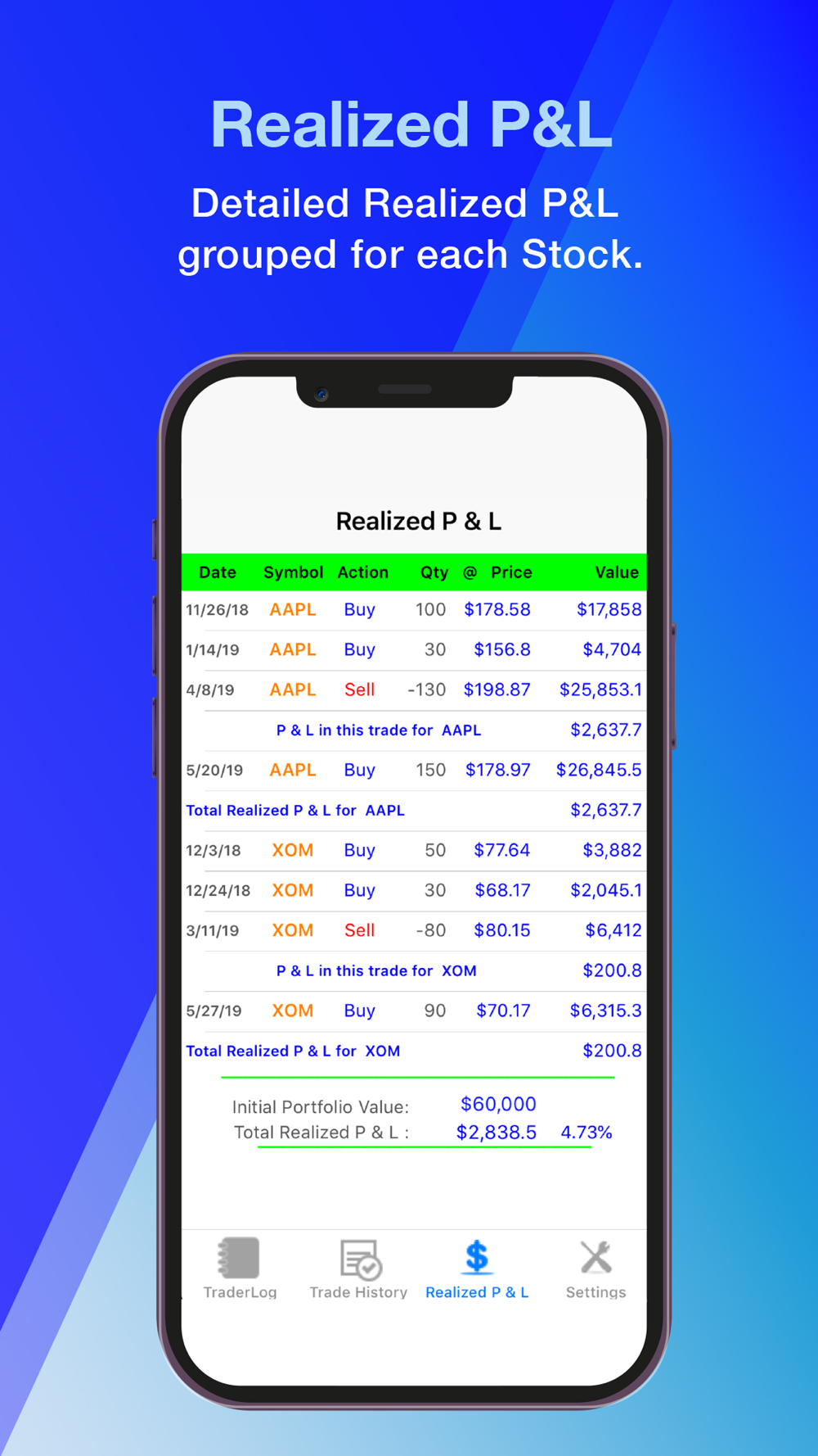 Create your stocks and cash portfolio and register your trades in a friendly user interface, to View, on the go, your detailed Portfolio Value along with the Unrealized Profit & Loss for each Stock, among other reports.