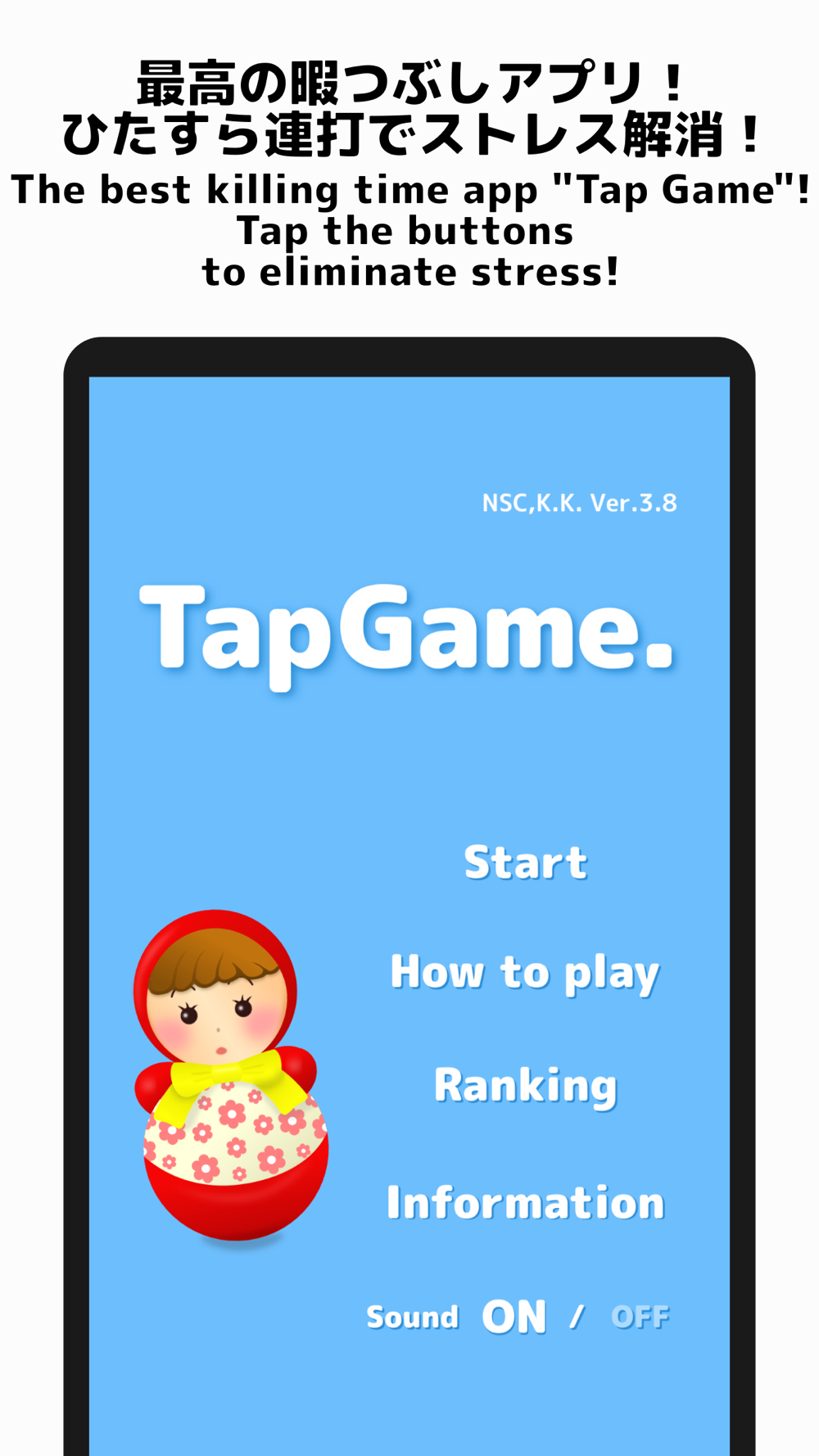 *1 The data registered in the online ranking is the nickname you entered in the registration form, your game result (number of taps), and the date and time when you registered it.