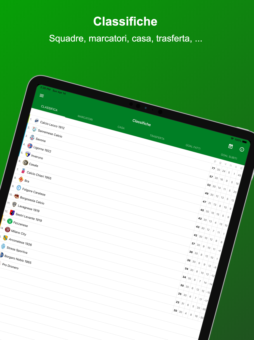 • Notifiche in tempo reale sui risultati delle squadre che segui