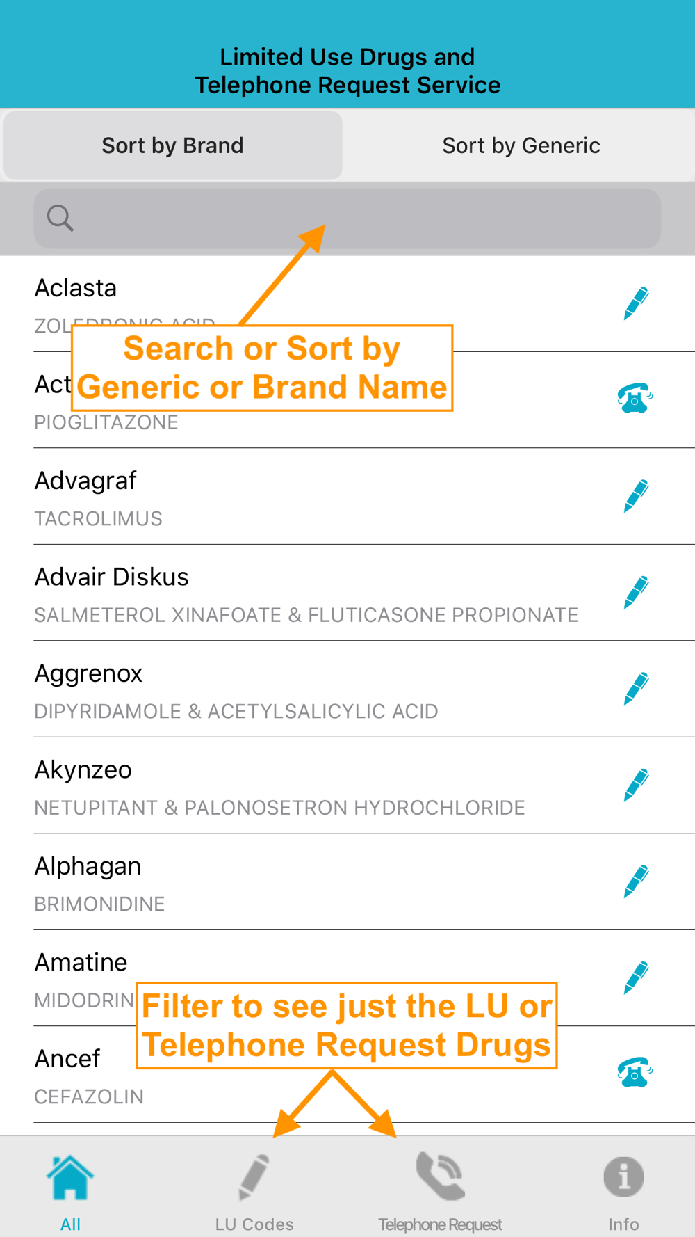 A mobile, searchable database of Limited Use codes and drugs eligible for the Telephone Request Service of the Ontario Drug Benefits plan in Canada!
