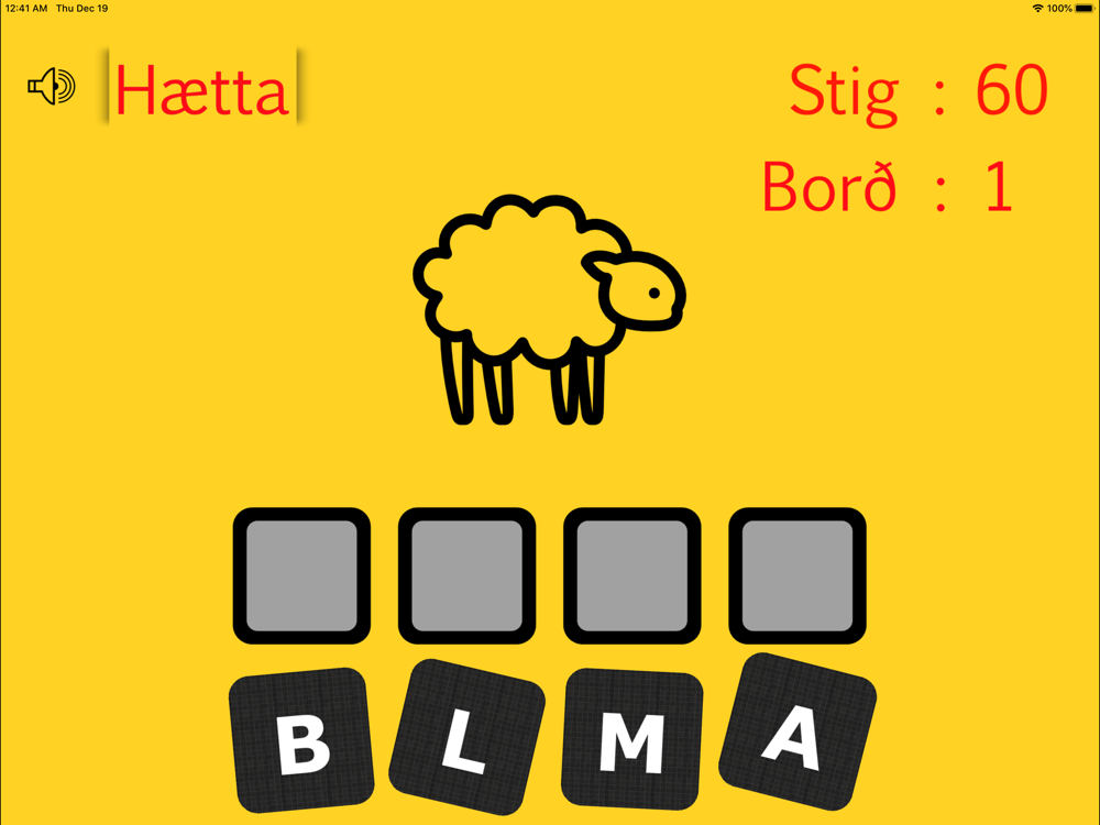Í Orðaleiknum birtist mynd ásamt stafarugli sem þarf að raða í rétta röð. Orðaleikurinn inniheldur yfir 200 myndir og orð sem skiptast í 33 mismunandi flokka eða borð. Í hverjum leik eru 3 orð og ef þeim er öllum raðað rétt án þess að villa sé gerð, þá opnast næsta borð.