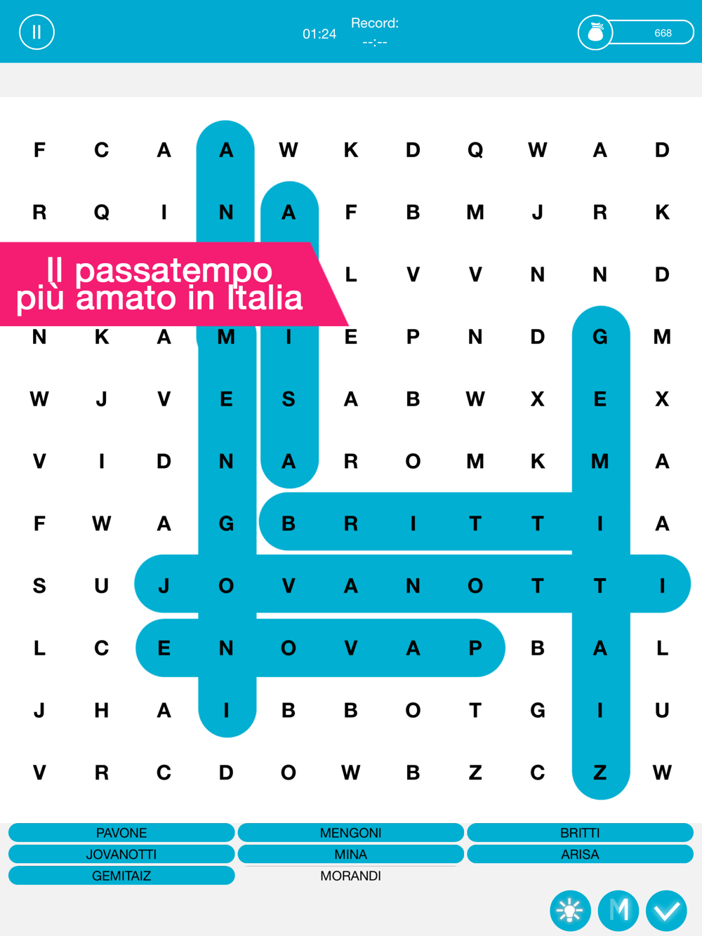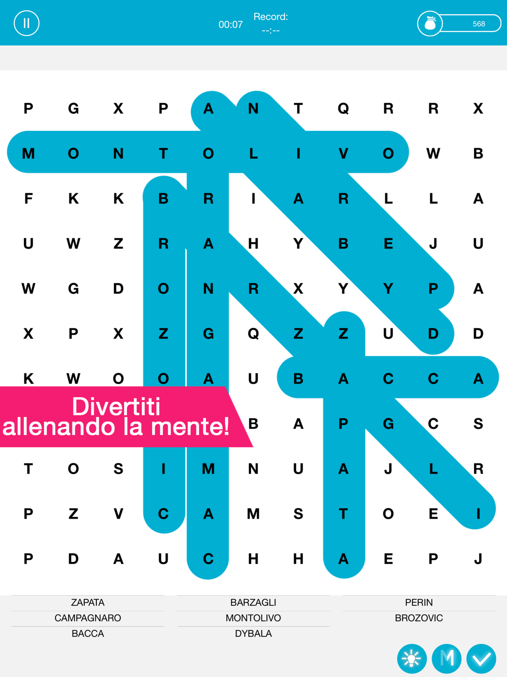 Ti basterà trascinare il dito su una riga per selezionare le lettere che compongono la parola trovata!