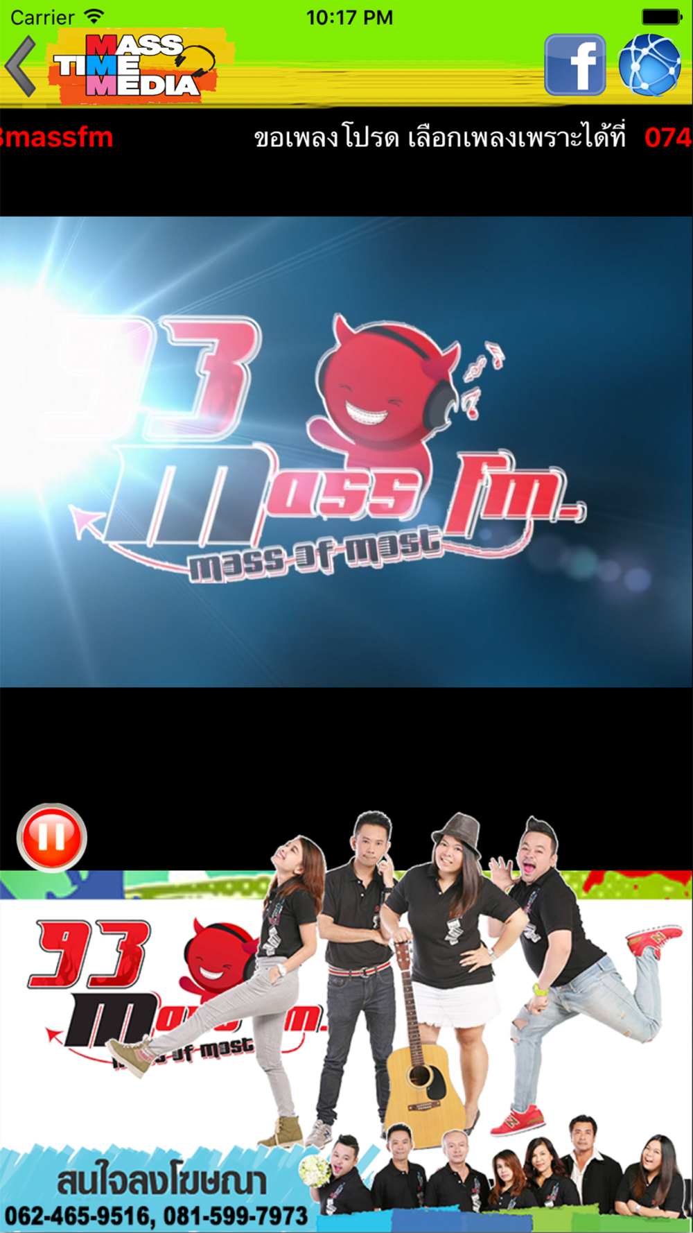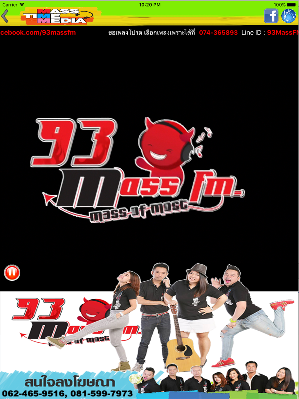 93 MASS FM. สถานีเพลงฮิตของคนทันสมัย ติดตามฟังเพลงใหม่ , ข่าวGOSSIPในวงการบันเทิง , กิจกรรมพิเศษ อัพเดทเรื่องฮอต ฟังสด กดส่องดีเจ.ตัวเป็นๆได้ทุกวันตั้งแต่ 07.00 - 02.00 น.