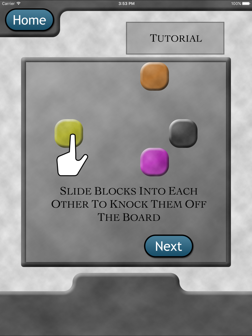 Slide blocks into each other to knock them off the board. Sounds simple enough but make sure not to get stuck without any moves left. But if you do get stuck there's always the undo button to let you try solving the puzzle again.