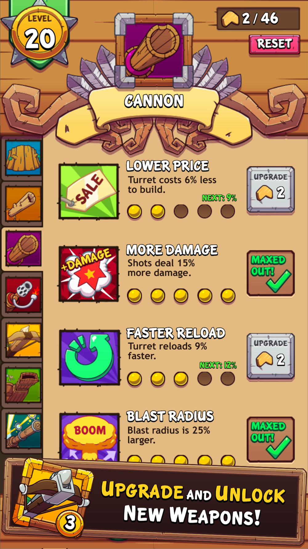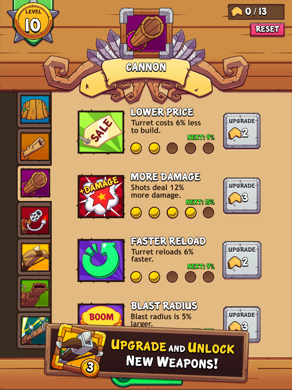 Upgrade each weapon with their own unique upgrades. Never pay to respec! Choose the upgrades you want to face each new challenge.