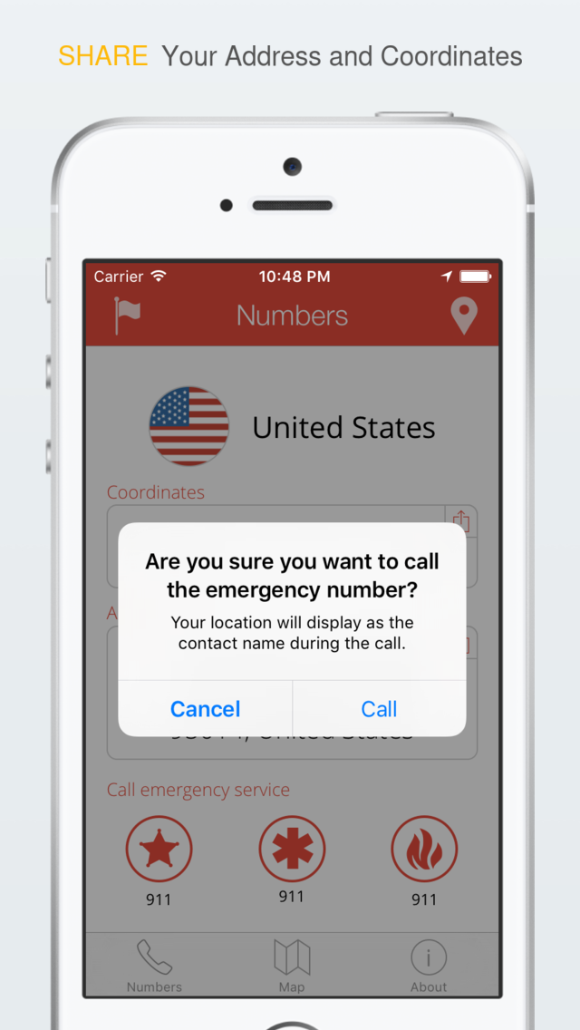 Dial local emergency police, fire, and ambulance phone numbers anywhere in the world with a single touch.