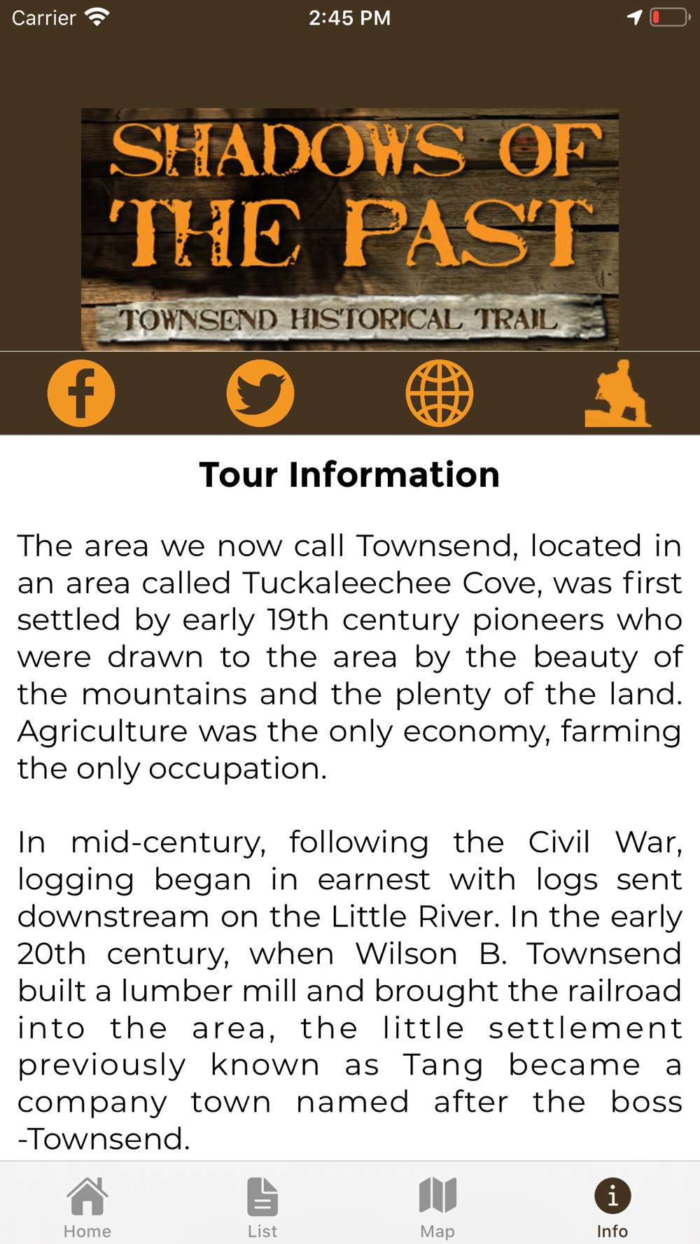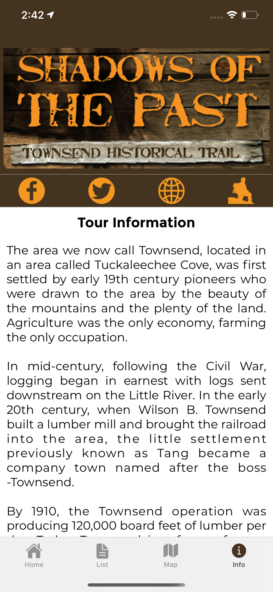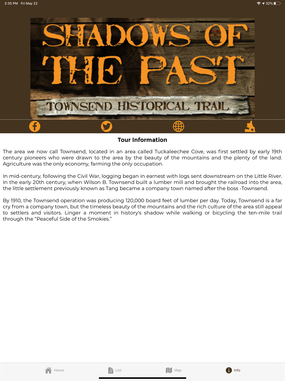 This free app features an audio and GPS guided tour “Shadows of the Past” trail along with social media and web links for the Smoky Mountains.