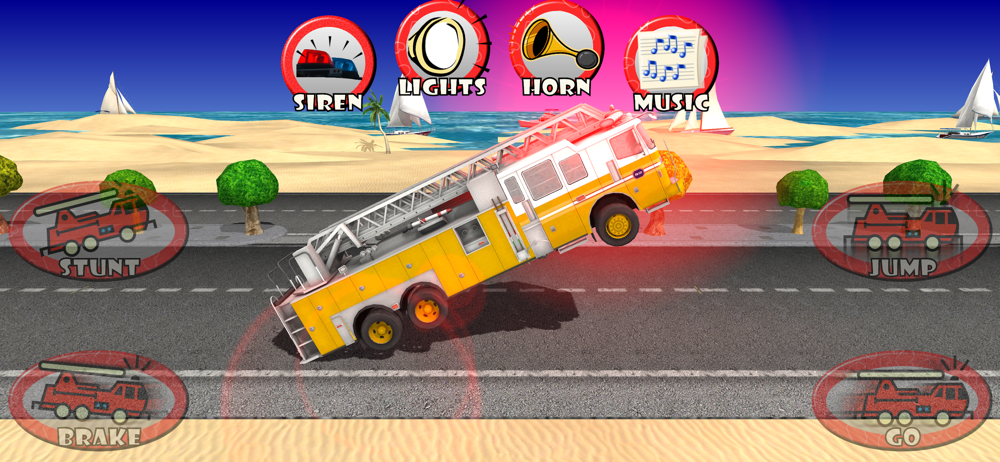 I loved playing with a toy fire truck as a small child, so I worked with my children to make a simple, easy to play with toy fire truck app. It has light up flashers, sirens, headlights, and a honking horn, plus a race and rescue mode to rush to the fire. Then use taps to fight the fire and save the buildings! Select you favorite fire truck from several skins and race through city, desert, snow, and even night time!