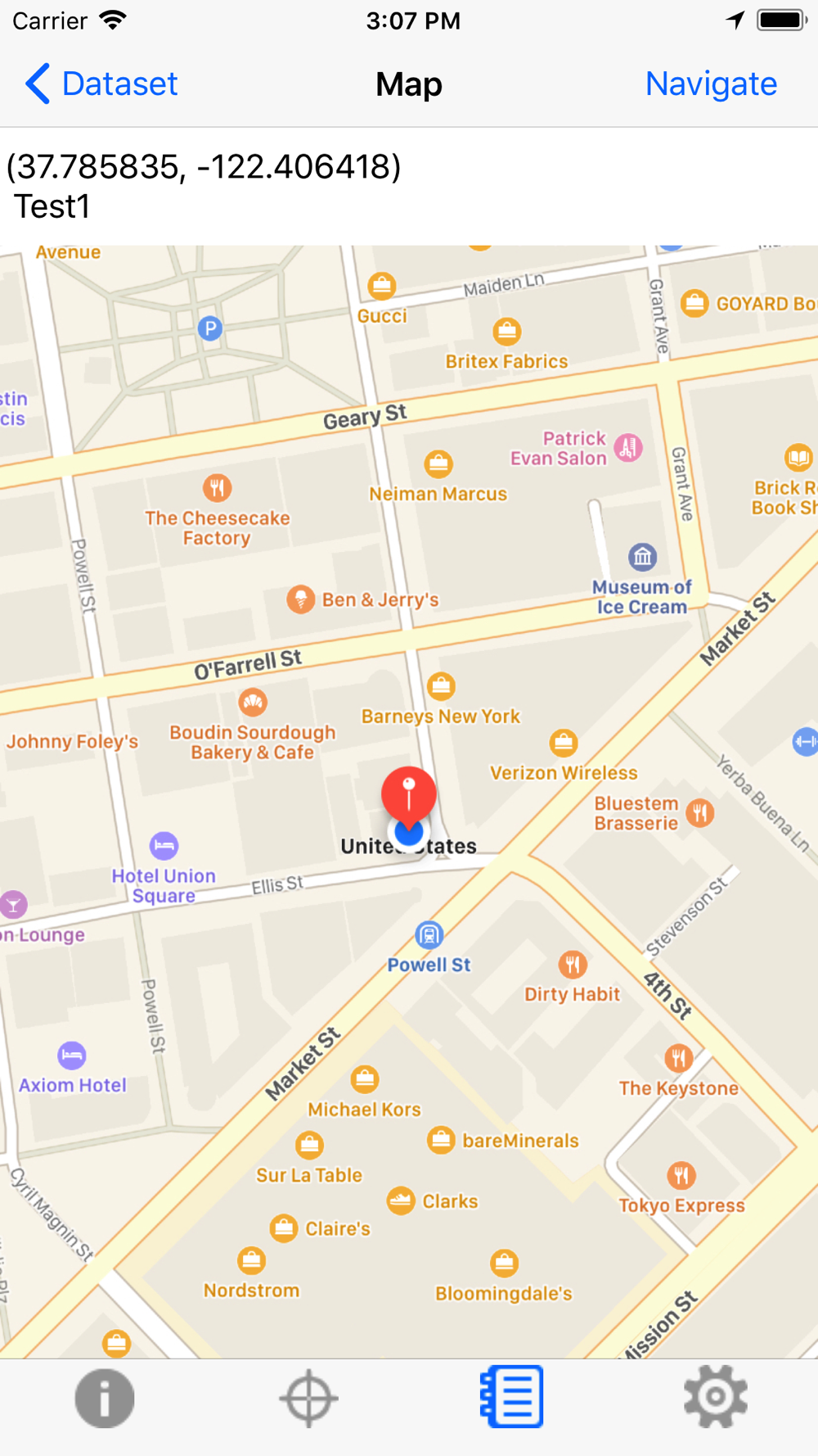With your selection, the saved map is shown with the location latitude and longitude and your annotation.