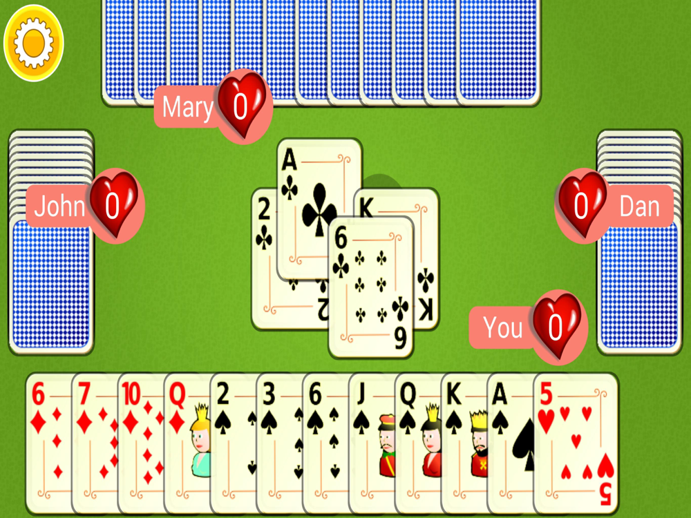 Play a captivating game of Hearts. To win you must avoid getting the scoring cards. Or you can Shoot the Moon. The game is over when one of the four players gains more or exactly 100 points. You win if you have the smallest score. Though chance is involved you can still make the best of your cards and win.