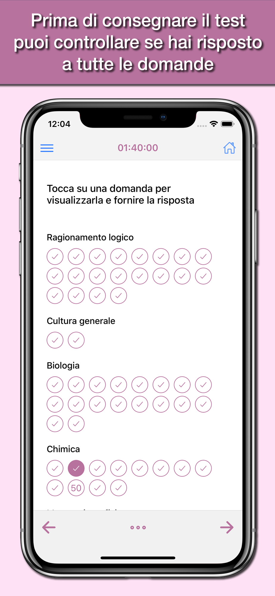 The app is designed to simulate as close as possible the test you actually have to deal with, with all the topics of the test: logical skills, general knowledge, biology, chemistry, mathematics and physics.