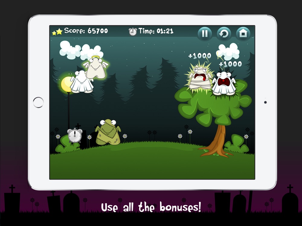 用几种不同的方式与怪物进行战斗!在与邪恶势力的不平等斗争中,您可以使用魔法,炸弹,闪电和其他隐藏在森林景观中的奖金。拯救善良的天使从狡猾和阴险的邪恶。