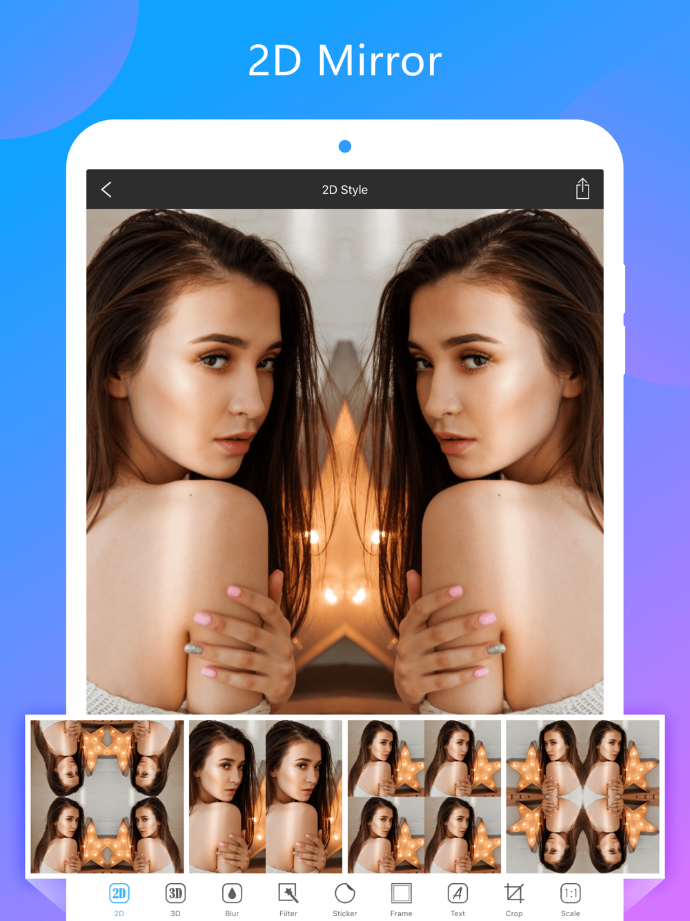 * Photo Editor - Tens of fancy filters to beautify your photos, just for mirror effects!
