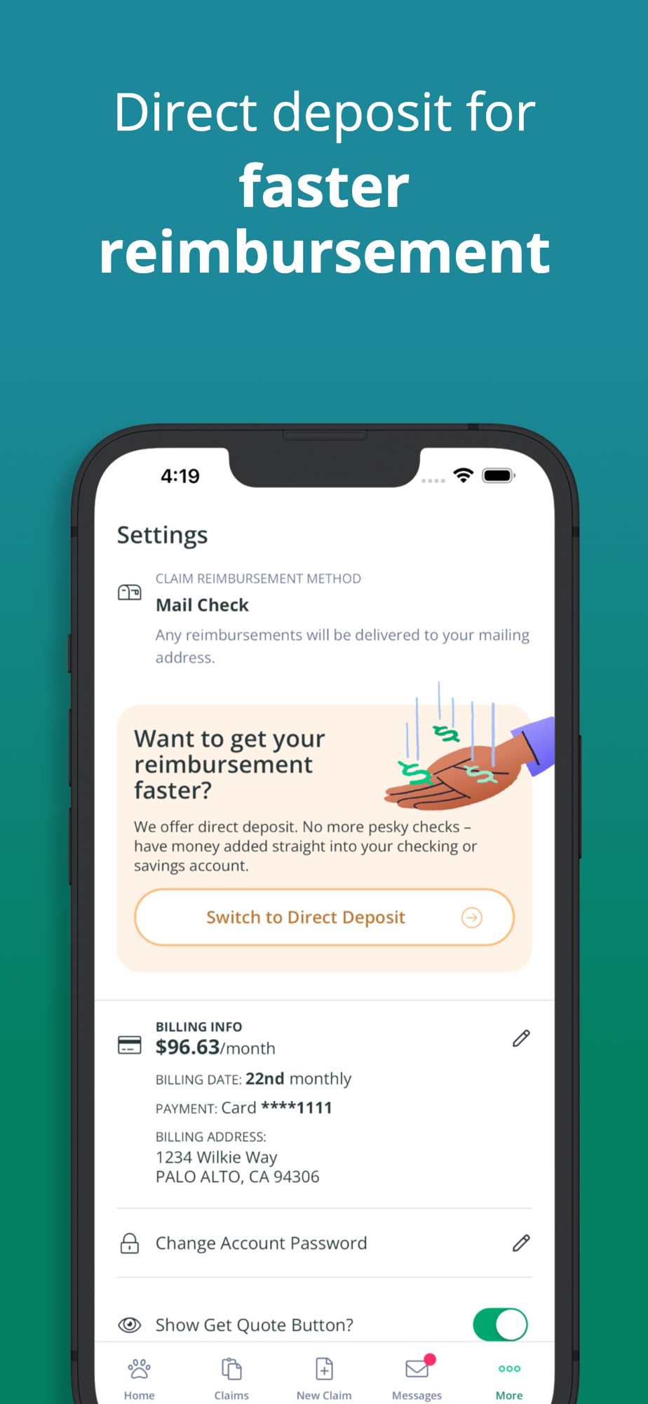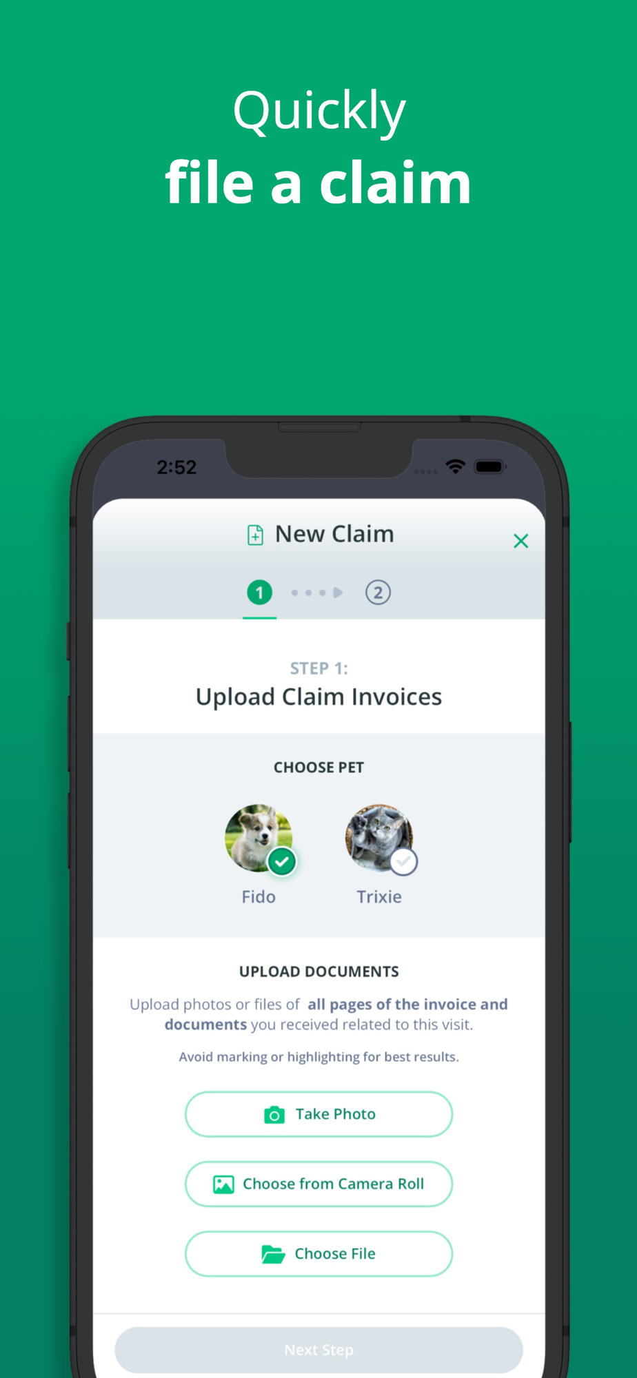 When it comes time to submit a claim, simply take a picture of the invoice and submit it via the app—no paperwork necessary. Most claims are processed within two days, and you can get updates on the status of your claim via the app.
