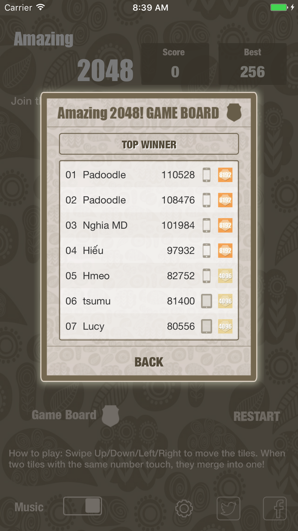 Standing out from other similar games in the market, Amazing 2048 is a very easy-to-play and relaxing game! Just swipe your screen UP/DOWN/LEFT/RIGHT to merge numbers and get the highest score.