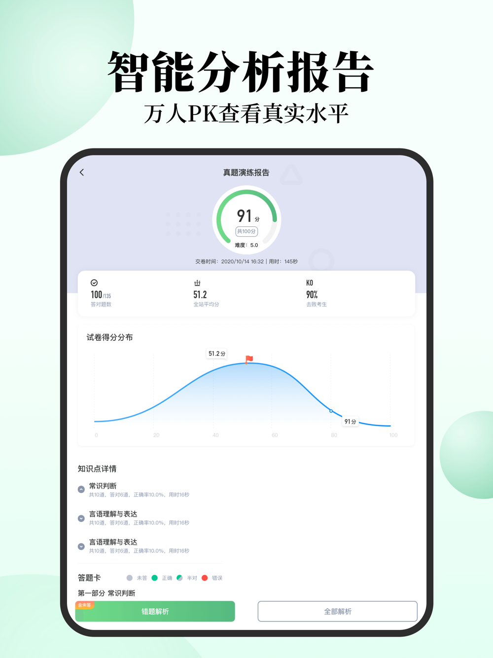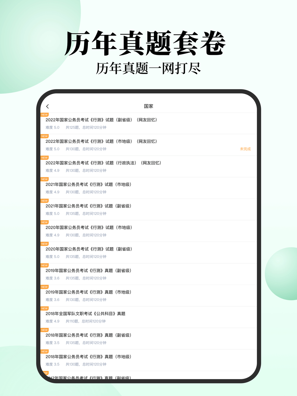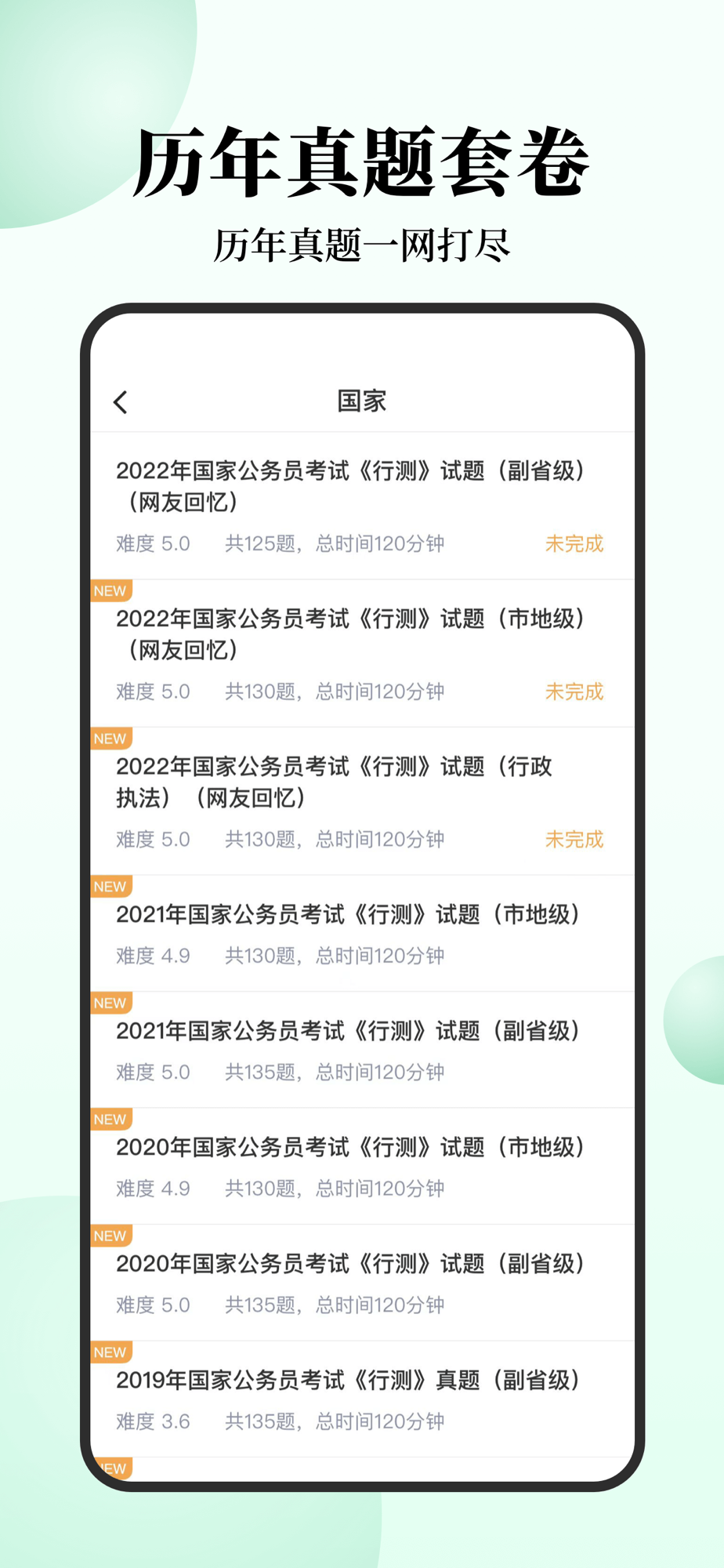 腰果公考App包含近十年国考、省考、政法干警等真题整卷,每道题都有细分知识点归属,每道题都有精心撰写的专业解析。