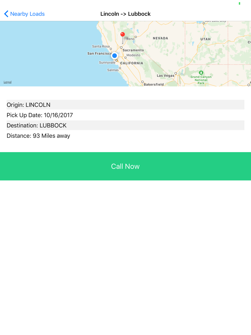 For Truckers: Find qualified loads that are closest to you, then tap Call Now to get ahold of the individual / company with the load.