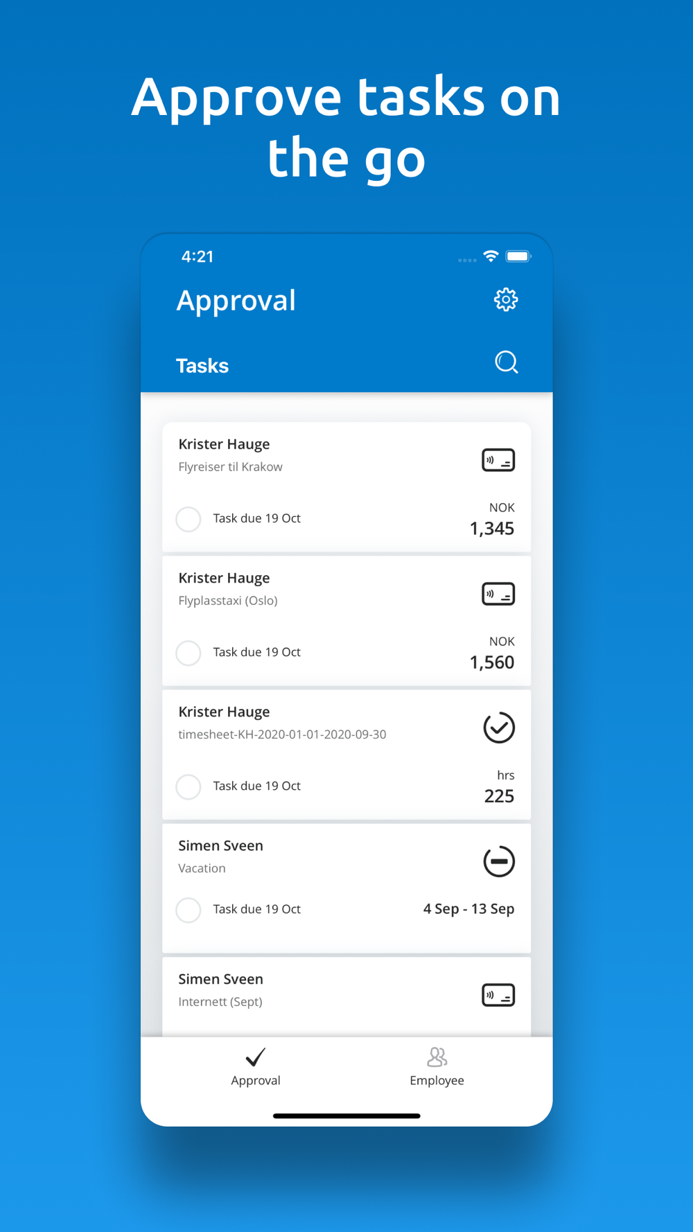 Stay updated with the latest information; approve invoices, expense claims, vouchers and leave requests on the go.