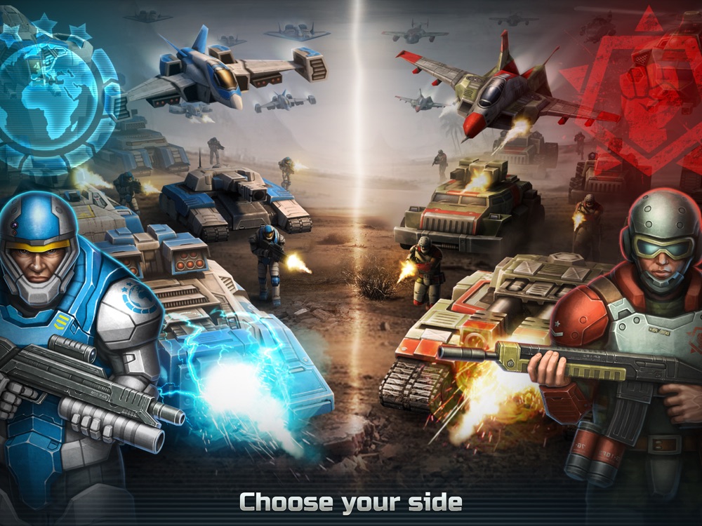 The action takes place in the near future. The world is engulfed by a global conflict between two warring factions - the Confederation and the Resistance. Choose your side and fight shoulder to shoulder with other commanders to win in this World War. Take the side of the Confederation and protect the world from the red alert. Join the rebels and crush the global domination system.