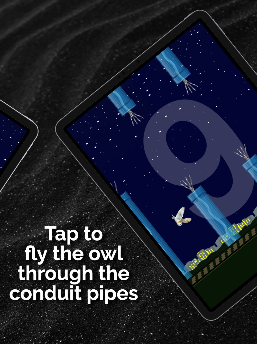 Tap your screen to make the owl fly through the obstacles. Be sure to watch out for the spikes! Hit them, and it's game over! Earn medals as you go and challenge your friends.