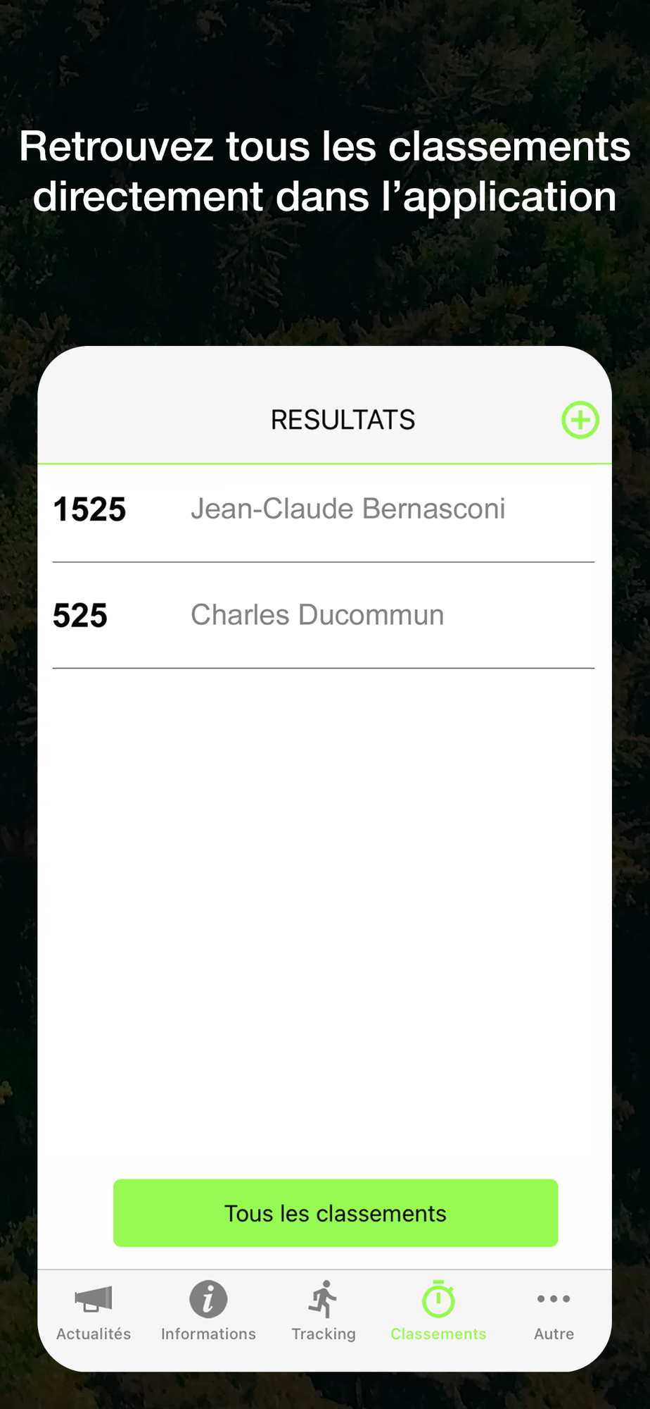 Cette application contient aussi le RACEtracking par GPS pour le suivi des coureurs durant les courses.